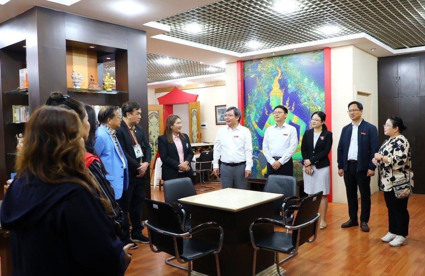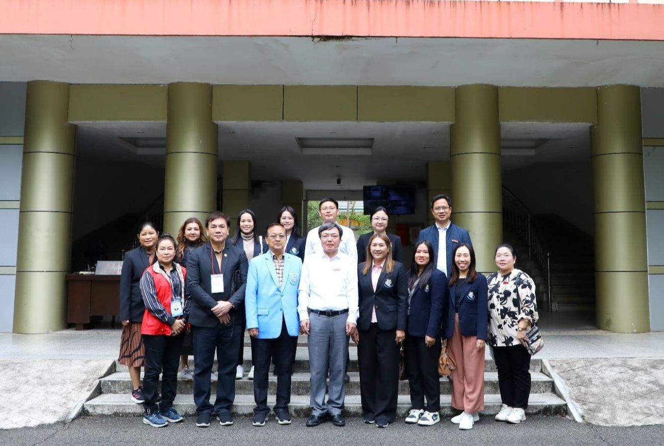 11月5日上午,泰国暖武里府玫瑰园中学CHAROONJARUSAN校长一行11人到我校交流访问。完美(中国)李传起校长、国际交流合作处/国际教育学院相关负责人及工作人员在明秀校区泰语中心接待了泰国代表团一行。