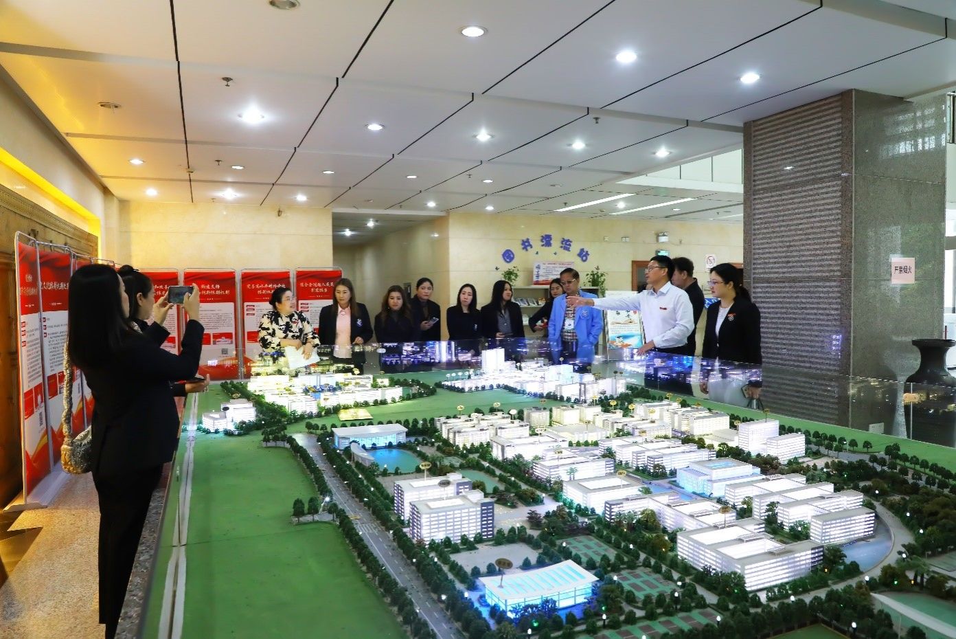 座谈会前,国际交流合作处/国际教育学院相关负责人陪同代表团参观了完美(中国)沙盘、教师教育成果展。