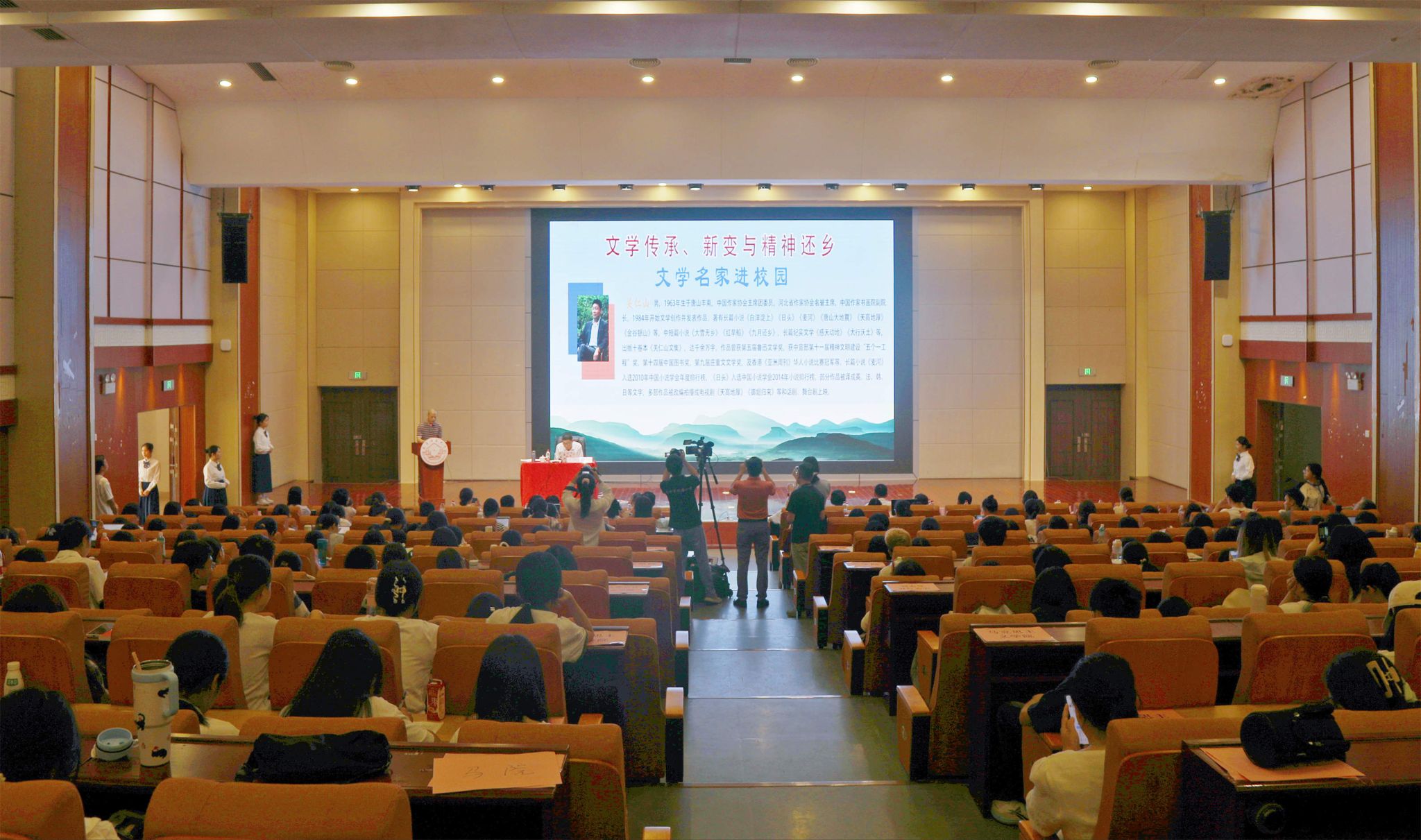 提问环节,气氛活跃,现场师生就“写作者应该关注乡村振兴的哪些方面”“短视频时代年轻人如何培养好的阅读习惯”“为什么‘精神还乡’对于当代文学和作家来说如此重要”等问题与关仁山进行了互动交流。