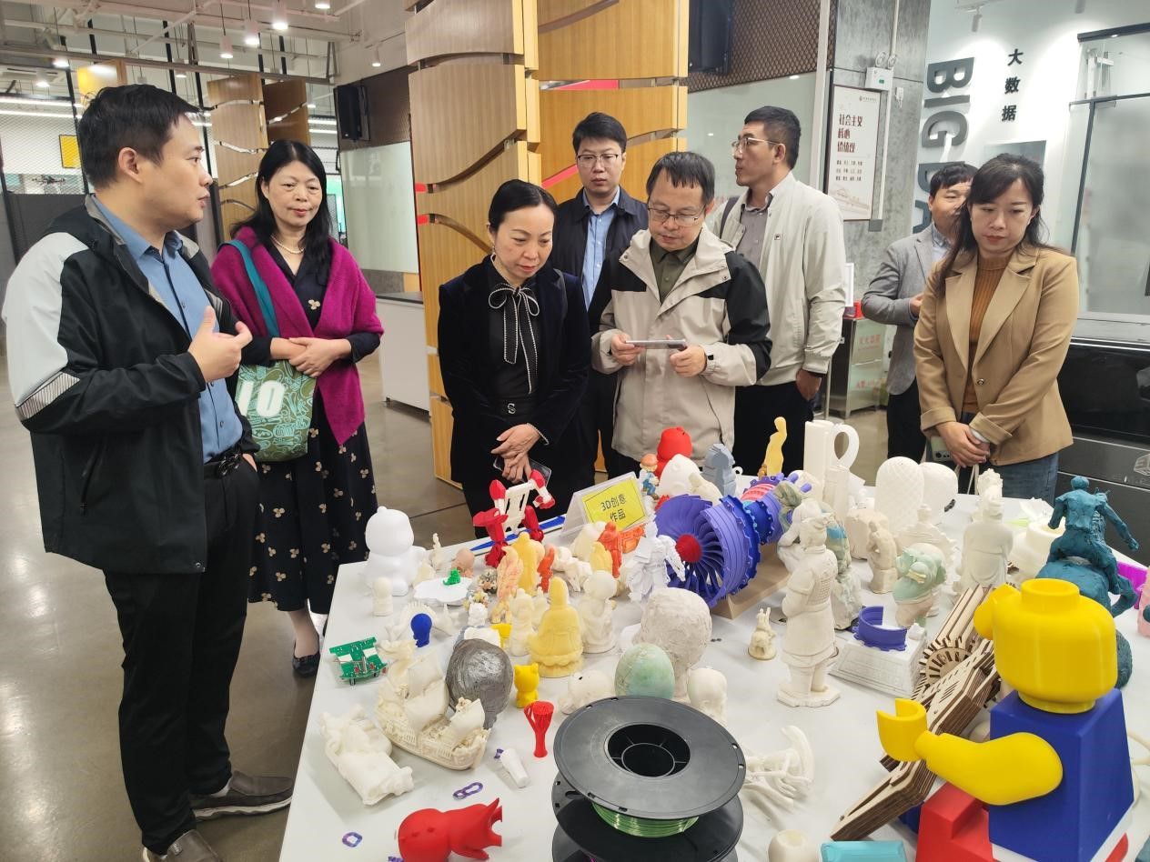 当日下午,调研组一行抵达广东工业大学,受到了该校党委副书记陈卓武的热情接待。在座谈会上,陈卓武详细介绍了该校“1+2+N”高质量创新创业特色人才培养生态,以及依托国家级创新创业教育实践基地——工大创谷所取得的成绩。该校创新创业学院副院长许金镇带领调研组实地参观了广工创新创业教育成果展示厅、“工大创谷”创新班实训室和乡村振兴创新创业工作室等特色区域。