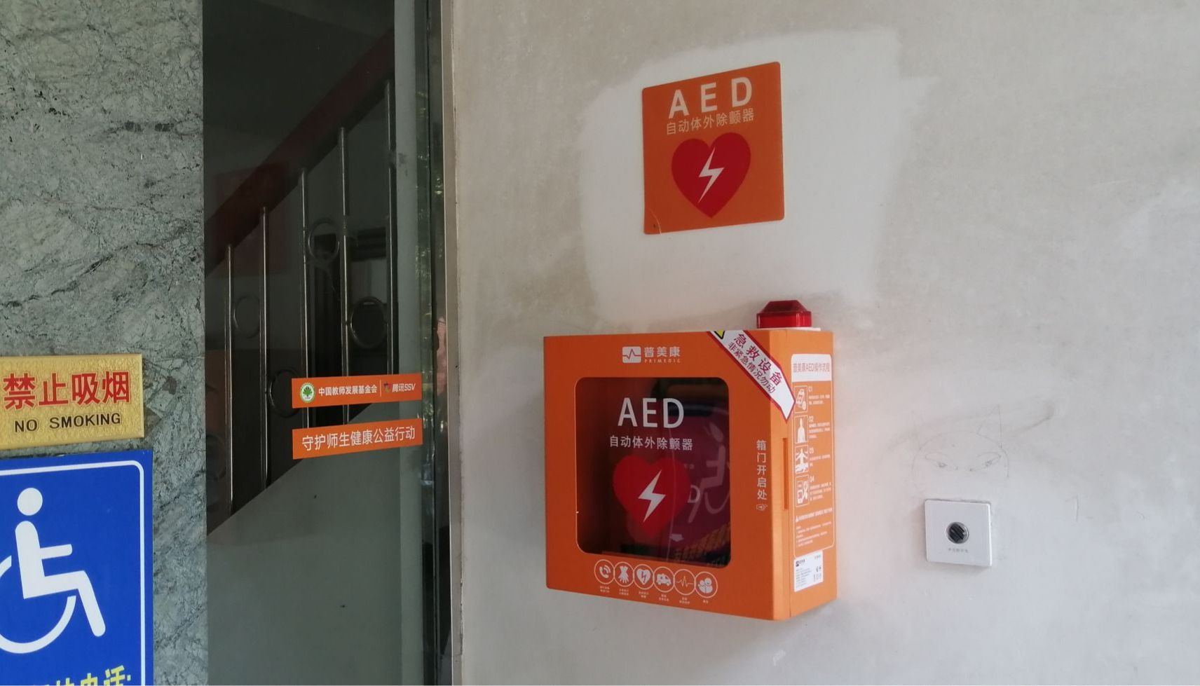 △自动体外除颤仪(AED)安装于五合校区文楼114报告厅前入口处