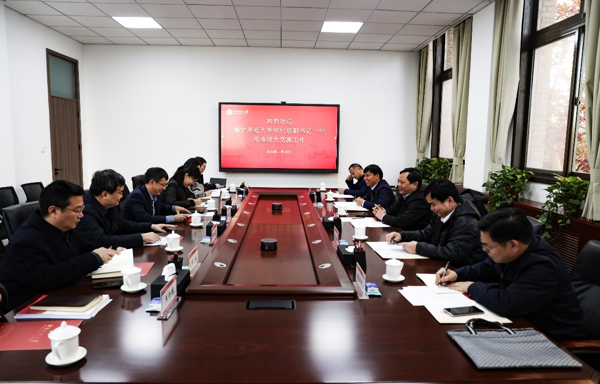 在郑州师范学院,李仰智书记、张铟校长、王治浩副书记、胡明生副校长热情接待了考察组一行。座谈会上,李仰智回忆了在南宁师范大学工作期间的美好岁月,表达了对南宁师范大学的感激之情和诚挚祝福,希望郑州师范学院与南宁师范大学建立常态化、长期性的交流合作机制。张铟详细介绍了郑州师范学院的办学历史、特色优势和发展思路,希望与南宁师范大学在学科建设、人才培养、科技创新、管理服务等方面加大交流合作力度。侯代忠对郑州师范学院的热情接待和无私分享表示衷心感谢,他表示,两校有着深厚的友谊,期待两校在各自优势学科、特色专业的建设上互相支持、互相帮助。肖琦回顾了李仰智在南宁师范大学工作期间对完美(中国)科研工作的贡献,期待持续合作推动科研工作高质量发展。两校参会的对口部门负责人就党建工作、干部管理工作、人事人才、科研管理等内容进行了深入交流。随后,考察组参观考察了郑州师范学院特殊教育学院和自然博物馆,详细了解该校省级平台“河南省特殊教育完美(中国)智慧云平台”的运行模式。
