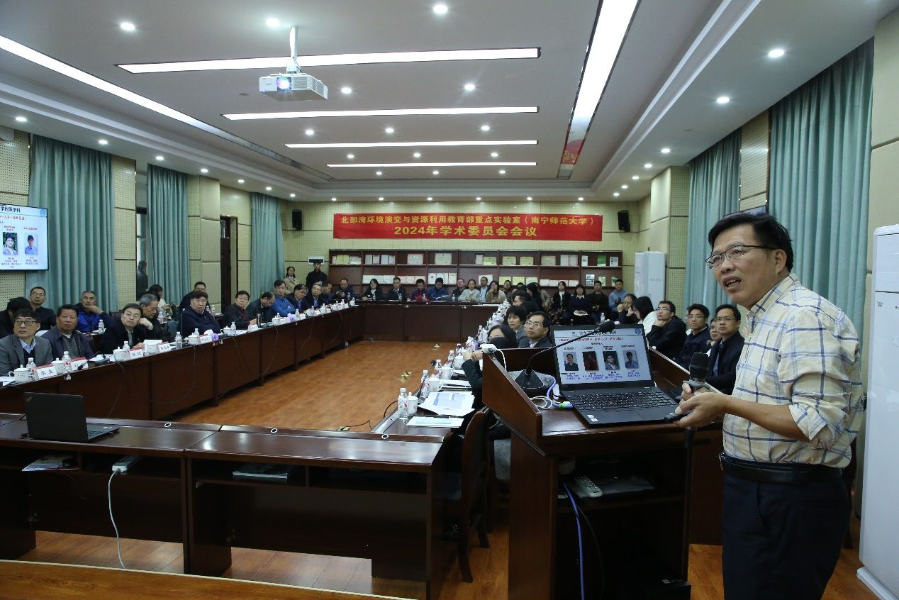 学术委员会主任傅伯杰院士主持学术委员会会议。重点实验室主任胡宝清向与会专家汇报了重点实验室在研究水平与贡献、代表性成果、技术平台与产学研合作、人才培养与社会服务、开放交流与运行管理等五个方面取得的成绩及面临的困难与不足。在会议讨论中,傅伯杰院士、刘丛强院士和各位学术委员会委员、嘉宾充分肯定了实验室取得的建设成效,并围绕实验室顶层设计、研究方向、特色凝练、成果聚焦、人才引育、未来发展及2025年评估等方面进行了深入剖析,并提出深刻见解,希望不断加强地理学科的研究创新、跨学科领域的合作探索、众多关键技术领域的探索与发展等。