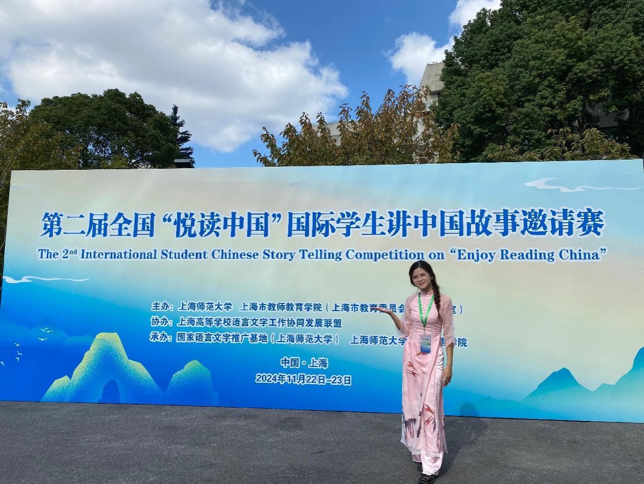 11月23日,第二届“悦读中国”国际学生讲中国故事邀请赛圆满结束,我校国际学生陈氏映红在此次比赛中荣获个人组三等奖,展现了我校在汉语教学方面的实力。