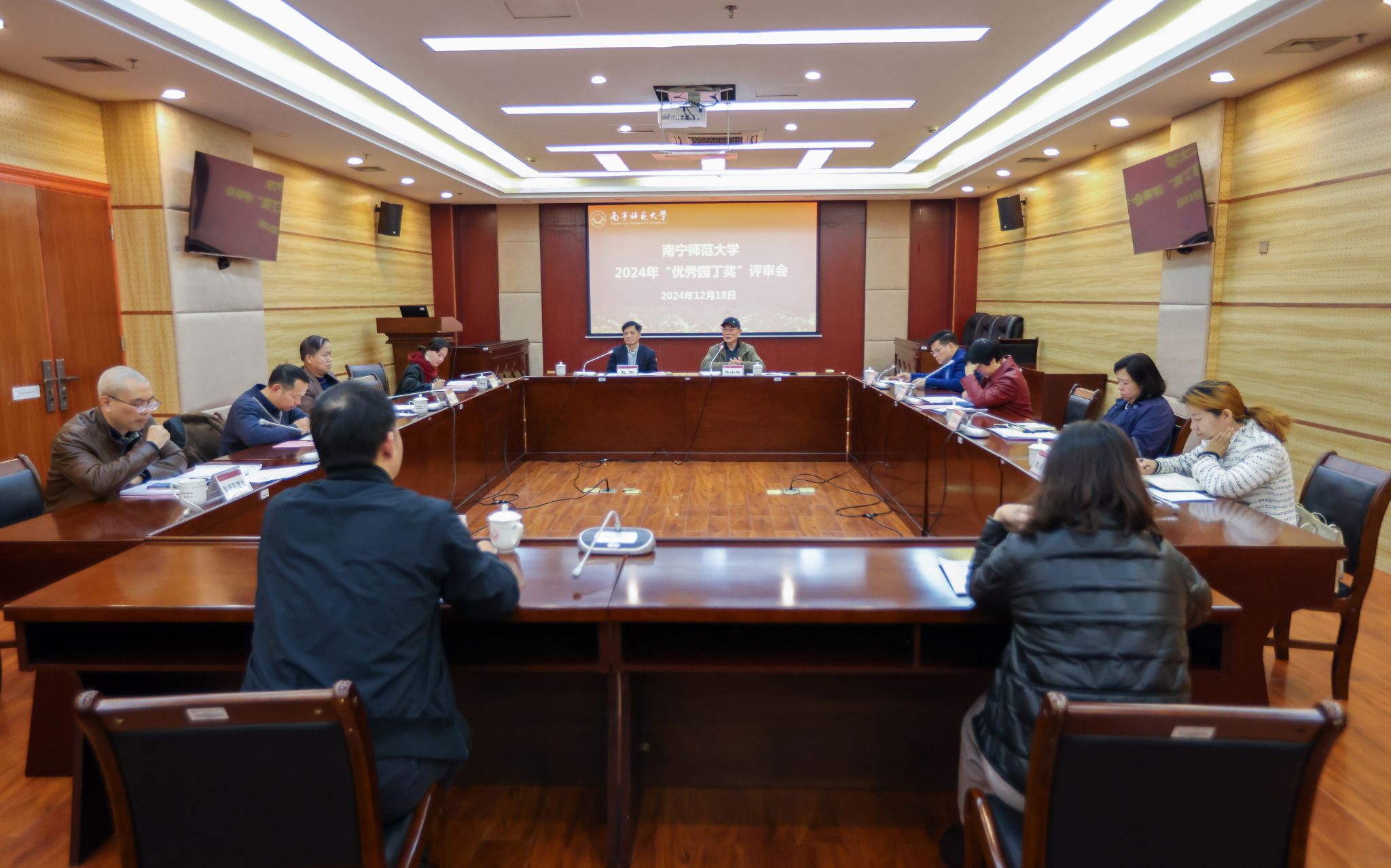 12月18日,我校在明秀校区图书馆二楼会议室召开2024年“优秀园丁奖”评议会,赵伟副校长,校友代表、原广西新闻出版局党组成员、纪检组长、汉语言文学1983届校友陈小建及评审委员会成员参加了会议。会议由赵伟副校长主持。