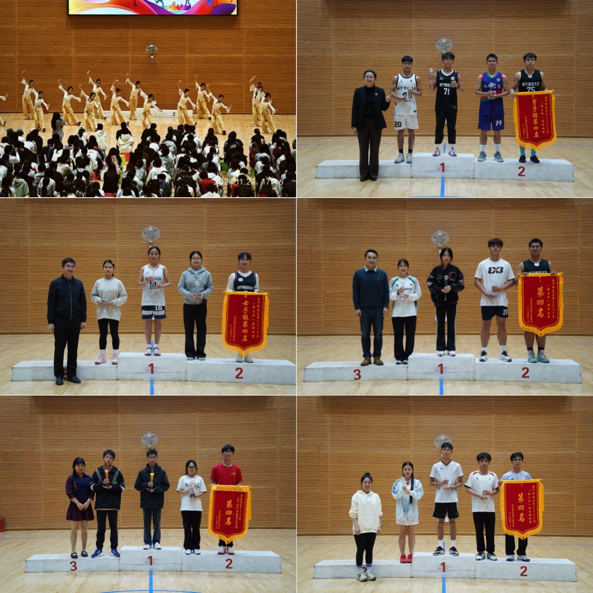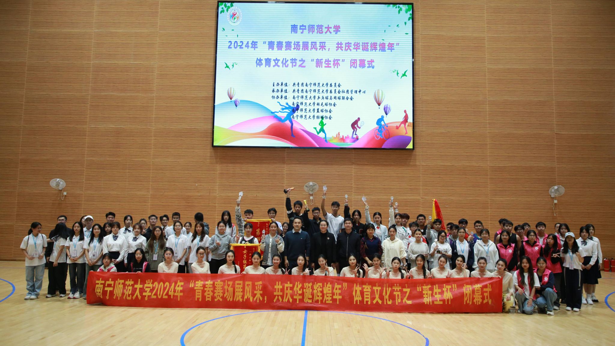 各项赛事经过激烈的角逐,于11月24日在武鸣校区松园体育馆落下帷幕,校团委全体老师及500余名运动员代表和学院代表参加了闭幕式。在闭幕式上,校团委负责人激励青年将赛场上的拼搏精神和团结精神,转化为未来学习和生活的青春动力,努力成为积极向上、健康活力的新青年。