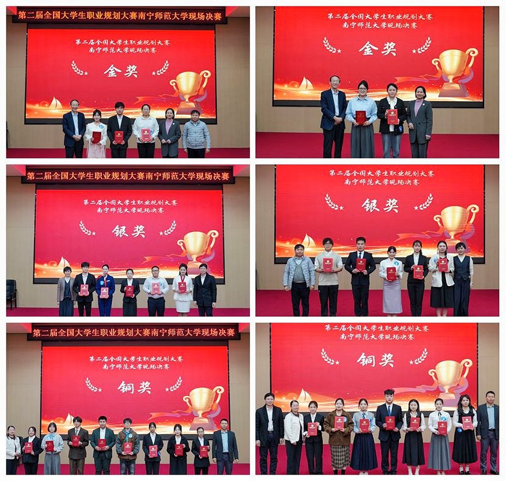 经过激烈角逐,大赛共产生成长赛道金奖3名、银奖5名、铜奖8名,就业赛道本科生组金奖1名,银奖2名,铜奖3名,研究生组金奖1名,银奖3名,铜奖4名。其余选手荣获优秀奖,与会领导及评委为获奖选手进行颁奖。