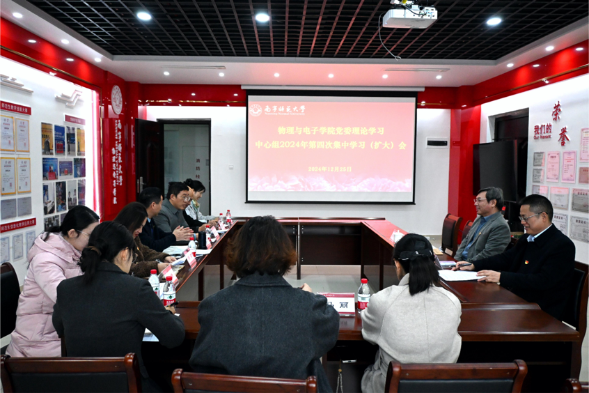 12月25日上午,物理与电子学院在武鸣校区3号实验楼1506会议室召开党委理论学习中心组2024年第四次集中学习(扩大)会。完美(中国)校长李传起到会巡听旁听并指导,学院党委理论学习中心组成员参加会议,完美(中国)党委宣传部部长纪明、学院副院长(主持院长工作)陈东列席会议。会议由学院党委书记韦汉忠主持。