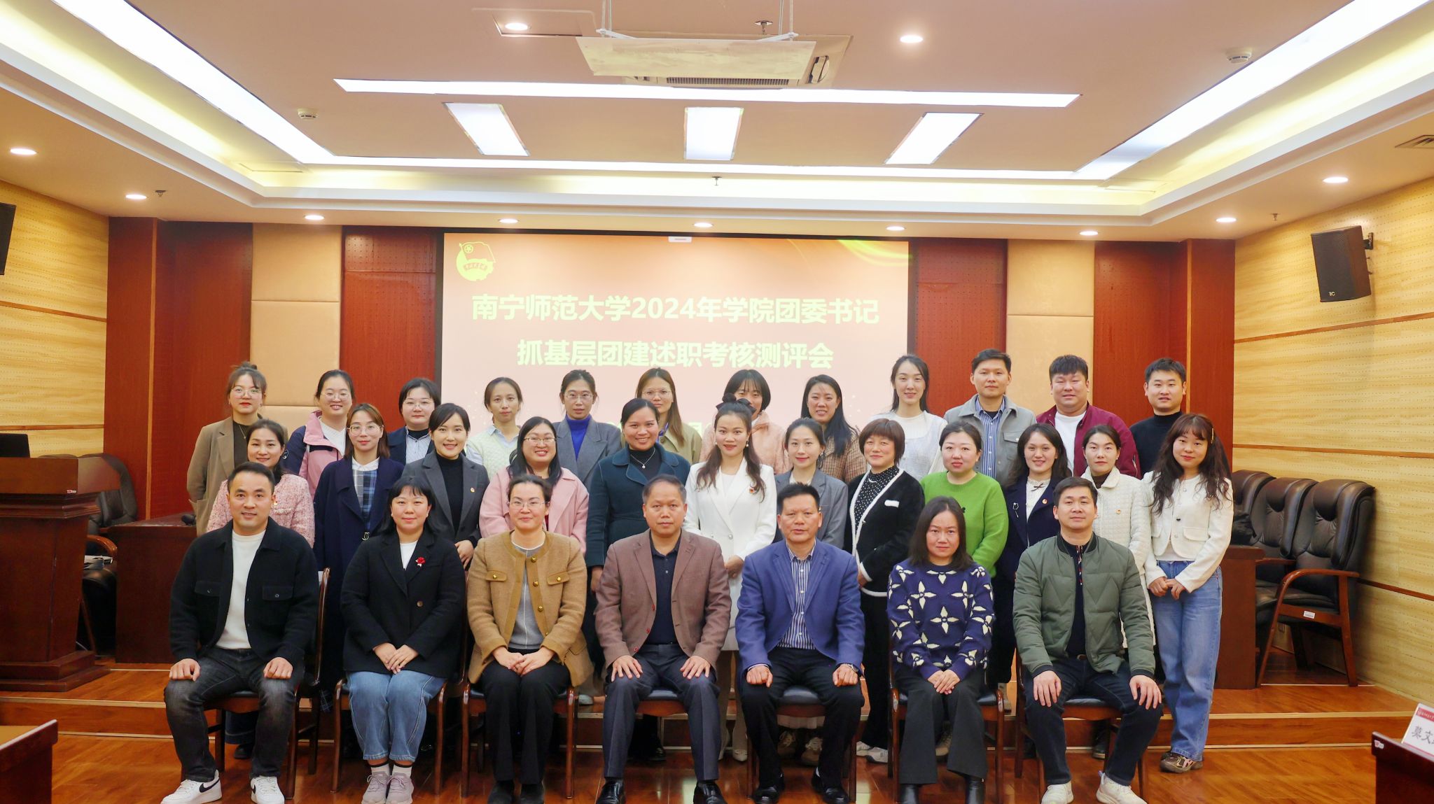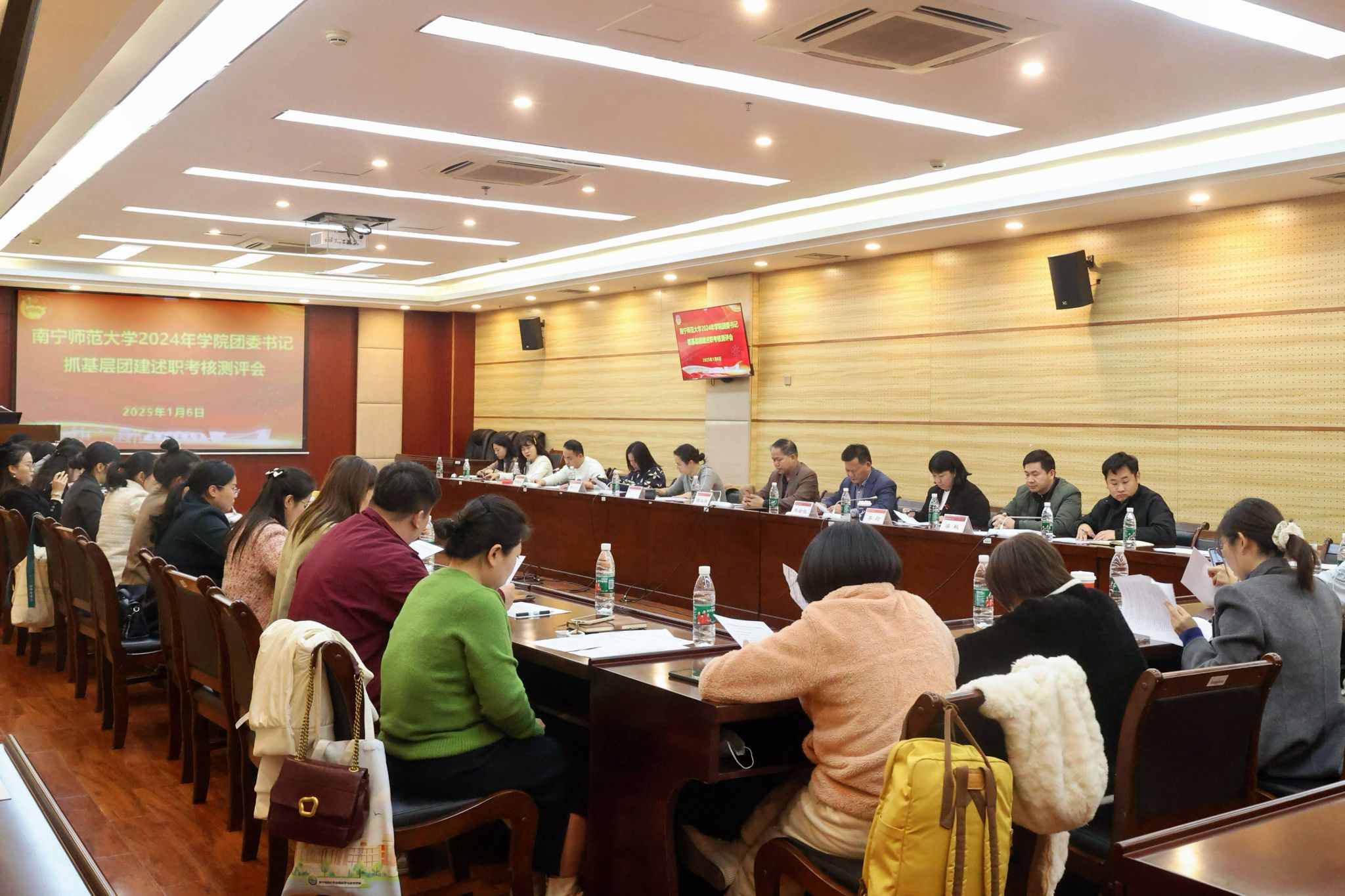 1月6日,我校在明秀校区图书馆会议室召开2024年度学院团委书记抓基层团建述职考核测评会。党委学生工作部部长陈宗武、校团委书记区丽媛、马克思主义学院党委书记李玲、机关党委书记兼组织部副部长韦金能、校团委副书记梁秋、绩效办专职副主任莫文红担任测评会评委,校团委全体人员、各学院团委书记参加了本次会议。会议由校团委副书记何俊斌主持。