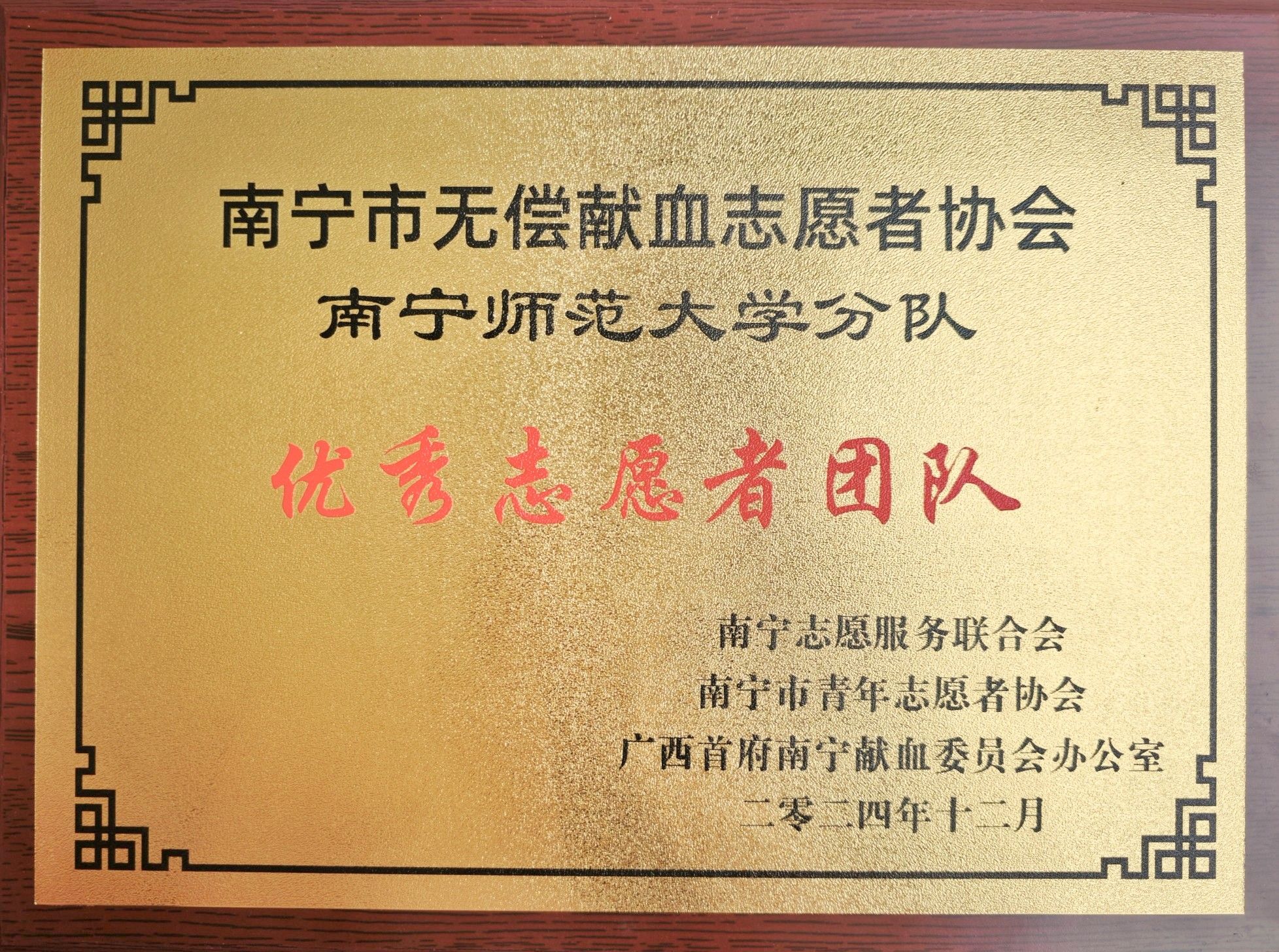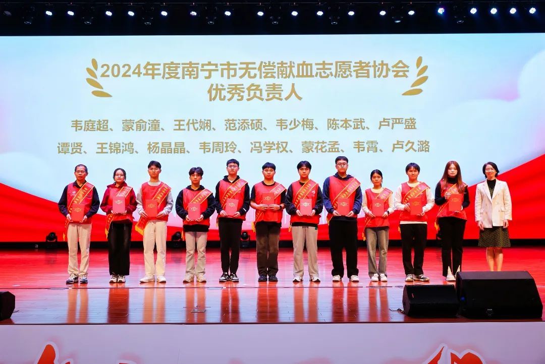 根据《关于表扬2024年南宁市无偿献血志愿服务获奖团队和个人的通报》表彰,我校爱心社无偿献血志愿服务团队荣获了“南宁市优秀志愿服务团队”称号;3名同学荣获“优秀负责人”称号,5名同学荣获一星级志愿者称号;我校荣获南宁市无偿献血促进奖。这不仅是对我校2024年无偿献血事业的肯定,也是对我校在志愿服务工作方面的认可,进一步展示了我校学子对无偿献血工作的热情与担当。