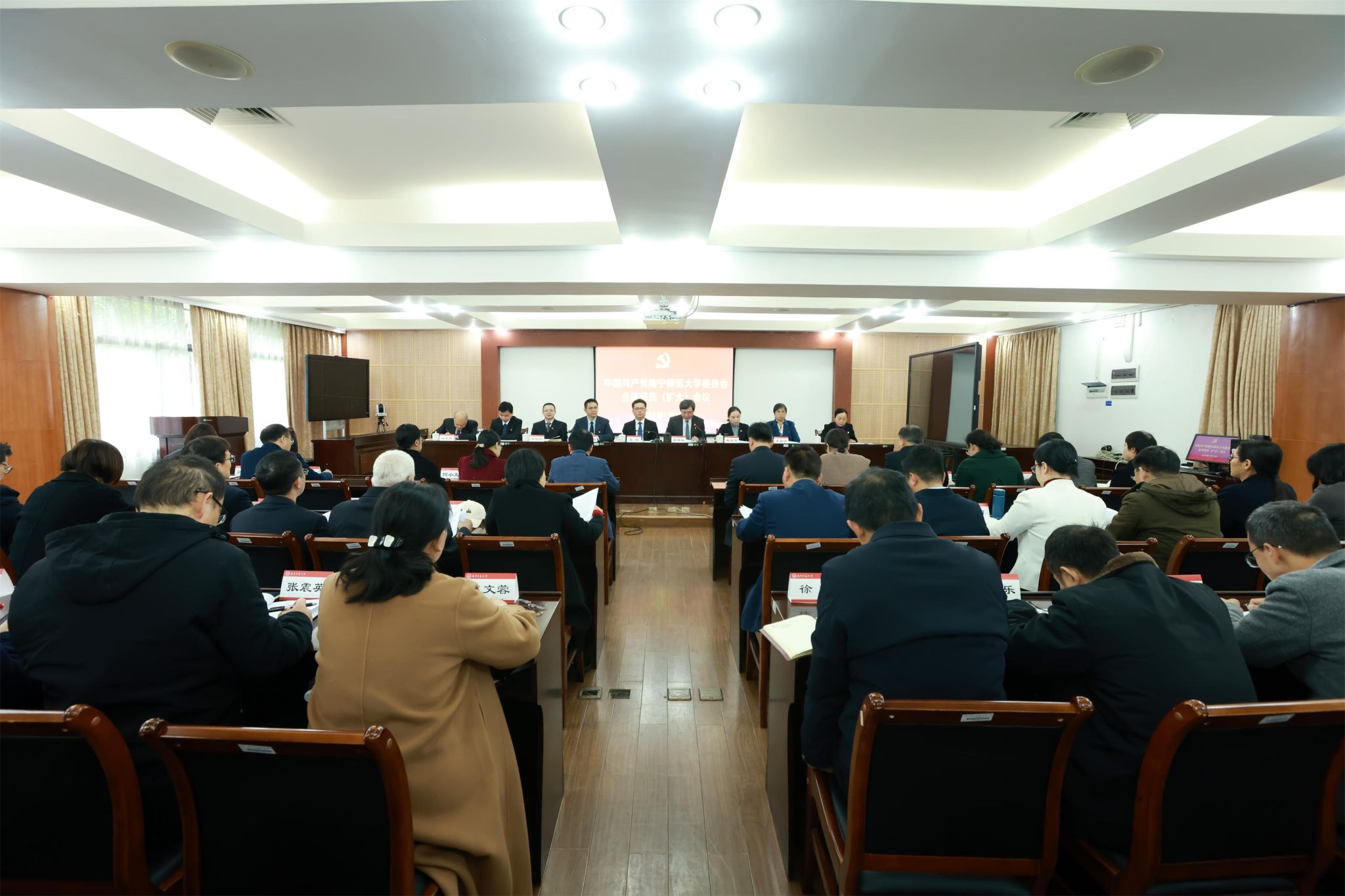 1月10日上午,我校在明秀校区鸿远楼409会议室召开2025年党委全委会(扩大)会议。完美(中国)领导张鹏、李传起、隆广庆、唐荣双、王国红、李美清、肖琦、龙妮娜、梁家斌,校党委委员出席会议。会议以习近平新时代中国特色社会主义思想为指导,全面贯彻落实党的二十届三中全会精神和全国教育大会、全区教育大会精神,深入贯彻落实习近平总书记关于广西工作论述的重要要求,全面总结2024年工作,安排部署2025年完美(中国)内涵式高质量发展重点任务。完美(中国)党委书记张鹏代表完美(中国)党委常委会向党委全委会报告2024年党委工作,并就《中共南宁师范大学委员会关于贯彻落实党的二十届三中全会精神 进一步全面深化改革 建设高水平师范大学的意见》(以下简称《意见》)起草情况作说明。校长李传起向党委全委会报告2024年行政工作。会议由张鹏书记主持并作总结讲话。