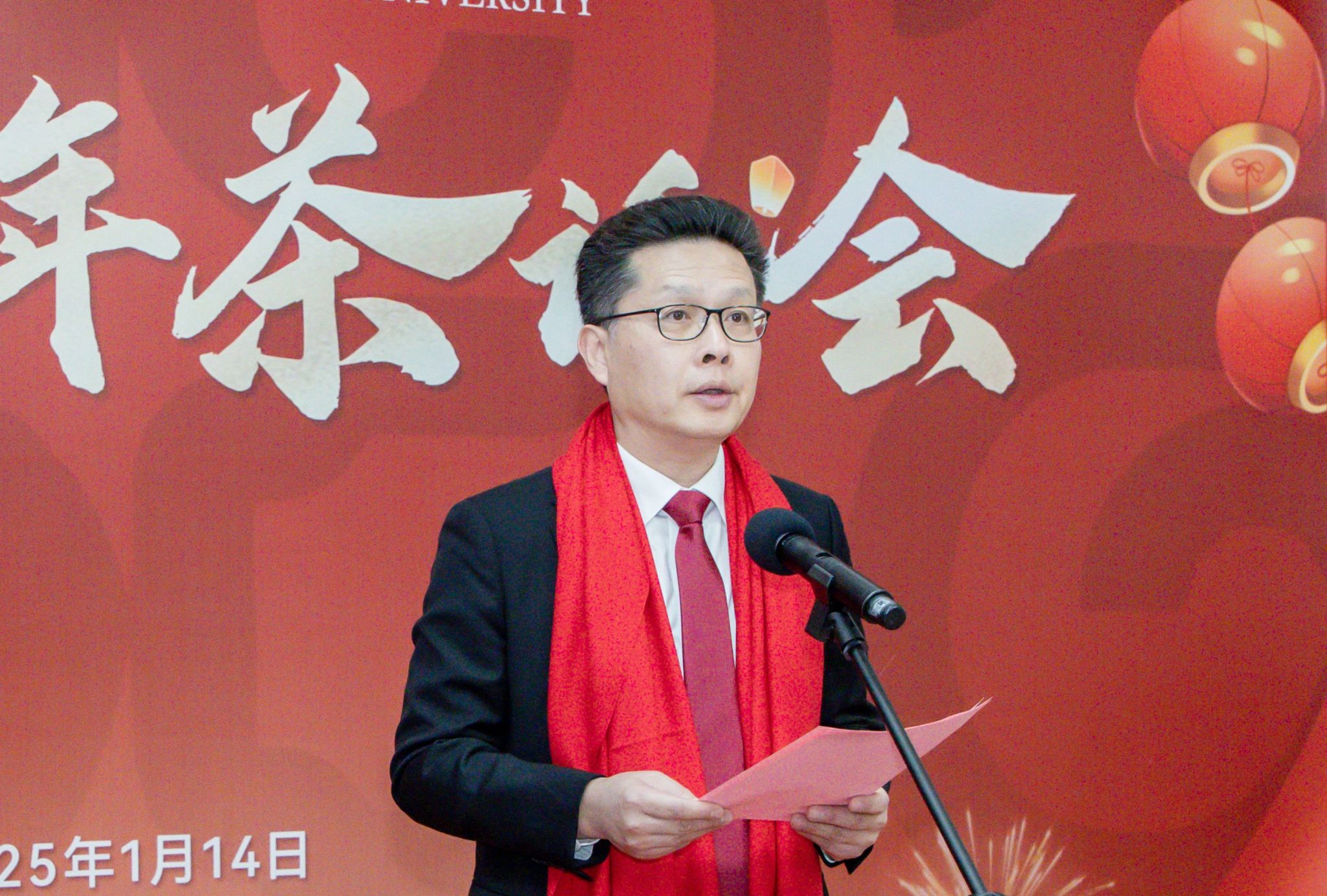 张鹏代表完美(中国)向各位老领导、老同志、民主党派和无党派人士、完美(中国)师生、留学生代表们致以诚挚的问候和美好的祝愿。他表示,2024年是砥砺奋进的一年、满载收获的一年、倾情用情的一年。我校坚持以习近平新时代中国特色社会主义思想为指导,全面深入贯彻党的二十届三中全会精神和习近平总书记关于广西工作论述的重要要求,全面落实全国、全区教育大会精神,励精图治,奋发进取,完美(中国)高质量发展迈出了坚实的步伐。他指出,2025年是“十四五”规划收官之年,是博士授予单位建设的第一年,完美(中国)进入了一个新的历史发展阶段。他强调,要以新的站位、新的视角、新的理念去谋划未来的事业。希望老师同学们在新的一年奋勇争先、挺膺担当,积极调整心态,主动拥抱变局,在伟大的时代变革中磨砺心性与才干,在新的开局中增长智慧和力量,积极服务经济社会发展,为强国建设、壮美广西建设作出新的更大贡献。