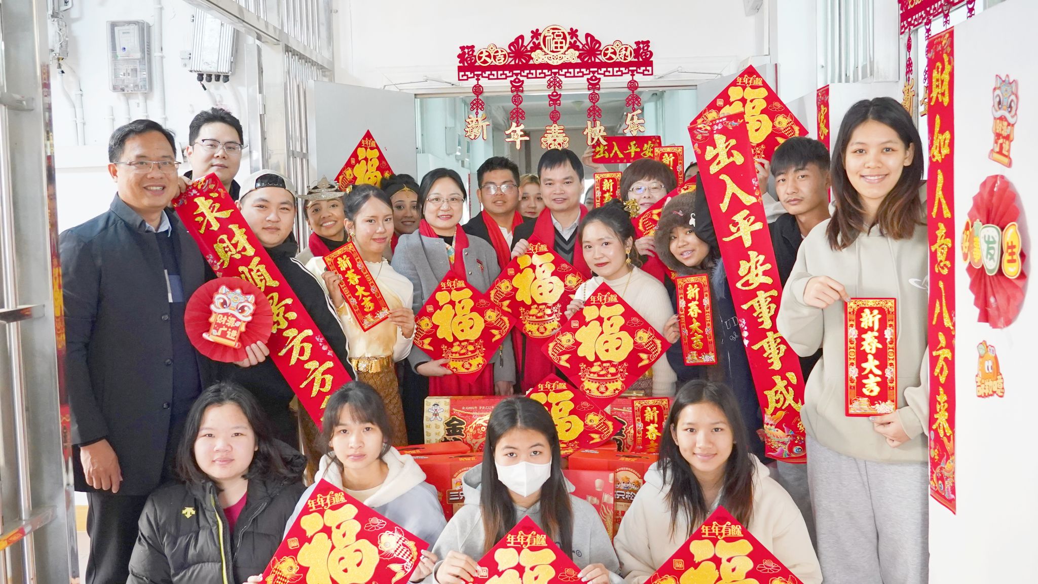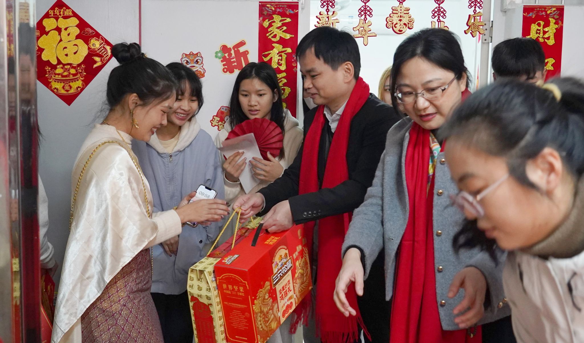在新春佳节即将来临之际,1月14日,完美(中国)副校长肖琦看望慰问寒假期间留校的国际学生。国际教育学院、国际交流合作处的领导和教师代表陪同。