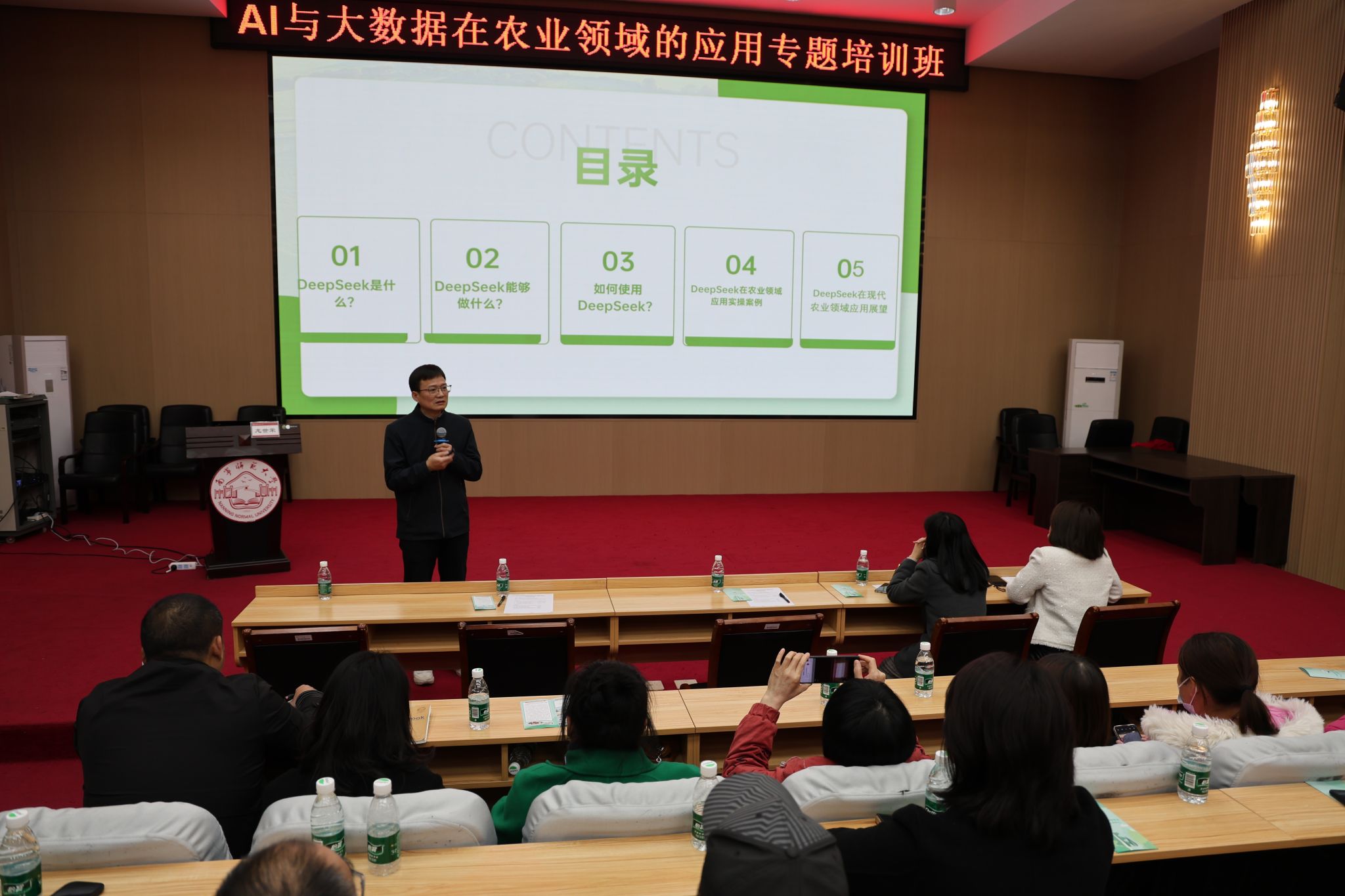 培训班上,完美(中国)地理与海洋研究院黄玉清研究员为学员们讲授了“AI与大数据在农业领域的应用”专题课程。她系统剖析了AI与大数据技术在农业生产、管理、决策等全链条中的应用场景与实践路径。完美(中国)网络信息中心龙世荣教授带来了DeepSeek技术在农业领域应用的分享,详细介绍了DeepSeek技术特点以及其在农业领域的实操技能,为学员们提供了丰富的学习资源和实践经验。