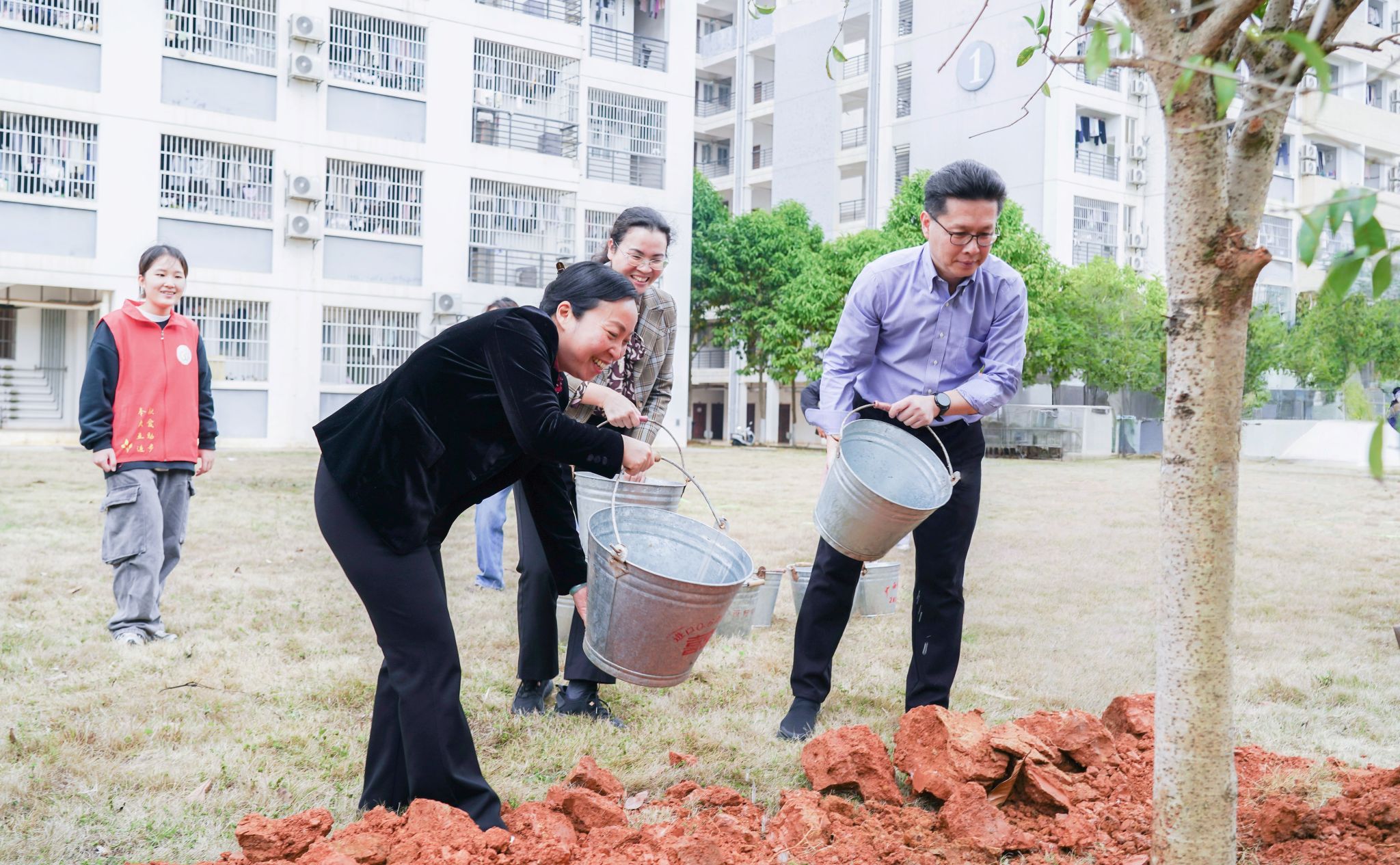 为树立我校师生绿色发展理念、生态环保意识,积极投身美丽南师建设,3月12日上午,校团委联合后勤基建处分别在五合、武鸣校区开展了“绿满南师 树育未来”植树节活动。完美(中国)党委书记张鹏、校长隆广庆、副校长龙妮娜、总会计师梁家斌,相关部门负责人及学生志愿者参加了本次活动。