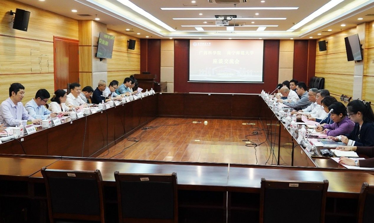 我校地理与海洋研究院、自然资源与测绘学院、地理科学与规划学院以及环境与生命科学学院等相关单位负责人分别介绍了各自科研平台、学科建设等具体情况。在交流中,双方一致认为,学科建设和产业发展是推动地方经济社会发展的重要支撑,并就科研平台建设、申报重大项目和人才培养等方面进行深入探讨,为我校与广西科学院的深度合作奠定了坚实基础。双方将以此次座谈会为契机,进一步深化合作,携手共进,为广西科技创新与产业发展贡献更多智慧和力量。