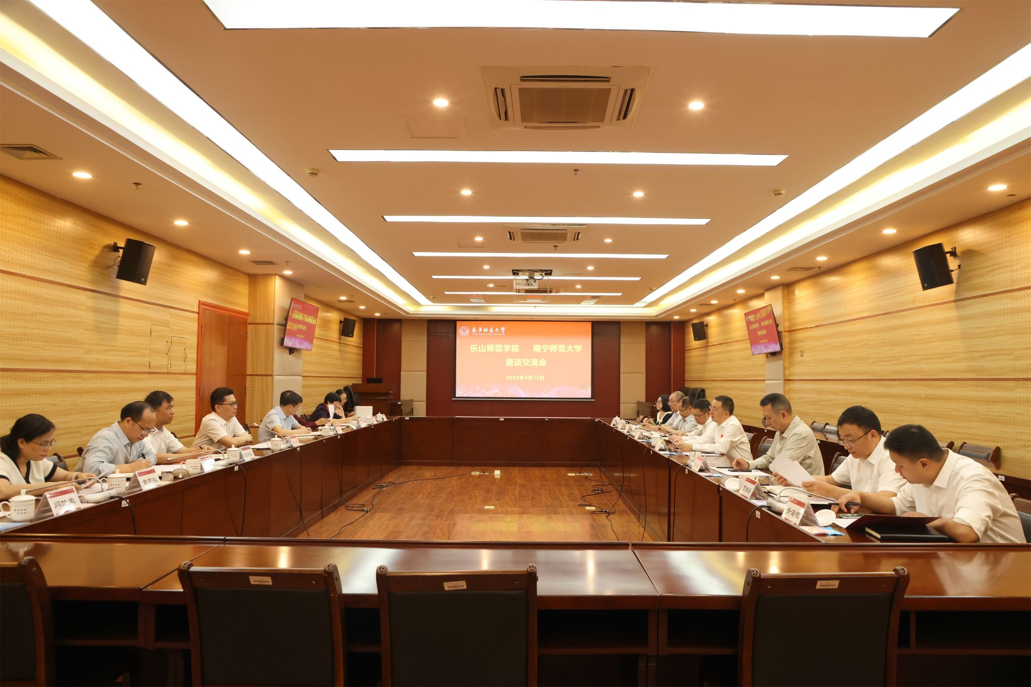 刘进对我校的热情接待表示感谢,介绍来意及乐山师范学院的办学历程、发展规划、学科建设、办学特色等情况。他表示,南宁师范大学近年来取得了令人瞩目的发展成就,希望通过此次调研加强交流、加深友谊、互学互鉴,共同推动两校高质量发展。