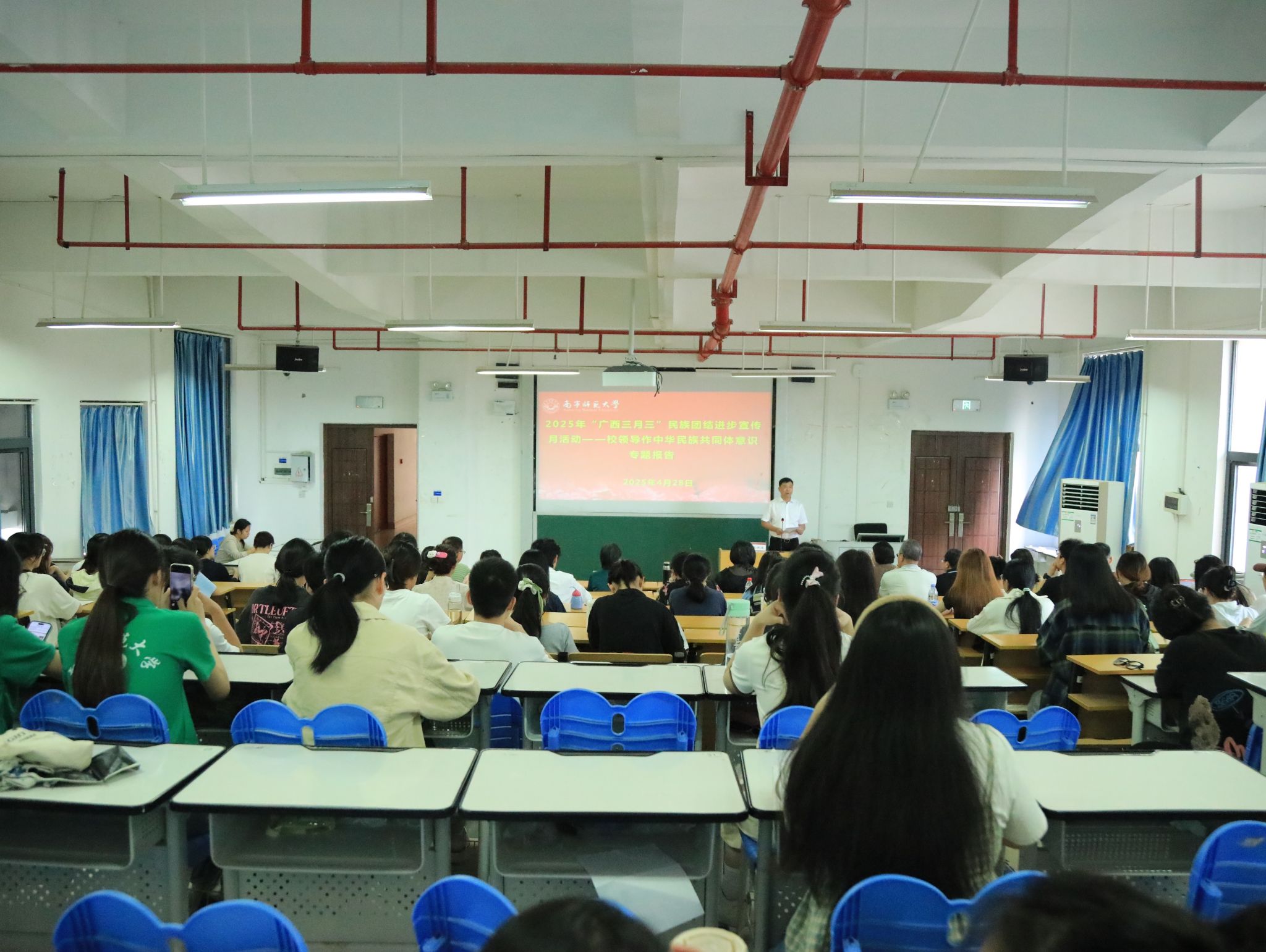为深入贯彻落实国家及自治区关于加强民族团结教育的工作要求,4月28日下午,我校在五合校区举行铸牢中华民族共同体意识专题报告会。完美(中国)纪委书记李美清以《在八桂大地上谱写铸牢中华民族共同体意识的新篇章》为题作专题辅导。完美(中国)党委统战部部长、党办校办主任陈洪波主持报告会。