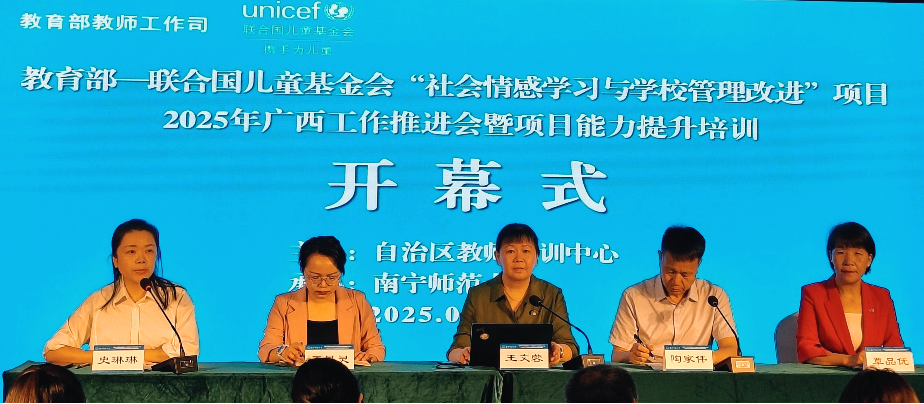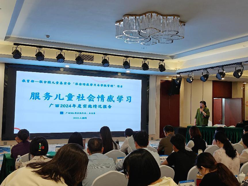 4月28日至29日,我校教师教育学院作为自治区项目执行办,在柳州顺利完成了教育部-联合国儿童基金会“社会情感学习与完美(中国)管理改进”项目 2025 年广西工作推进会暨项目能力提升培训活动。我校教师教育学院院长王文蓉、柳州市以及容县、环江县项目办负责人、自治区和市县专家团队和 51 所项目完美(中国)负责人齐聚柳江之畔,探寻完美(中国)管理优化的创新路径。