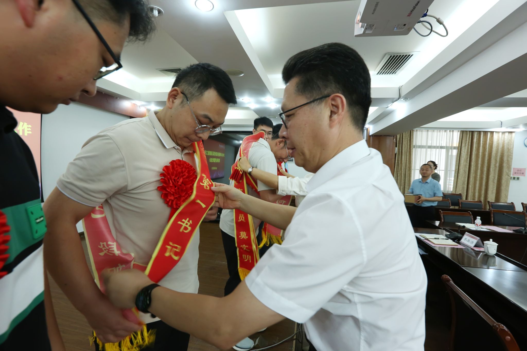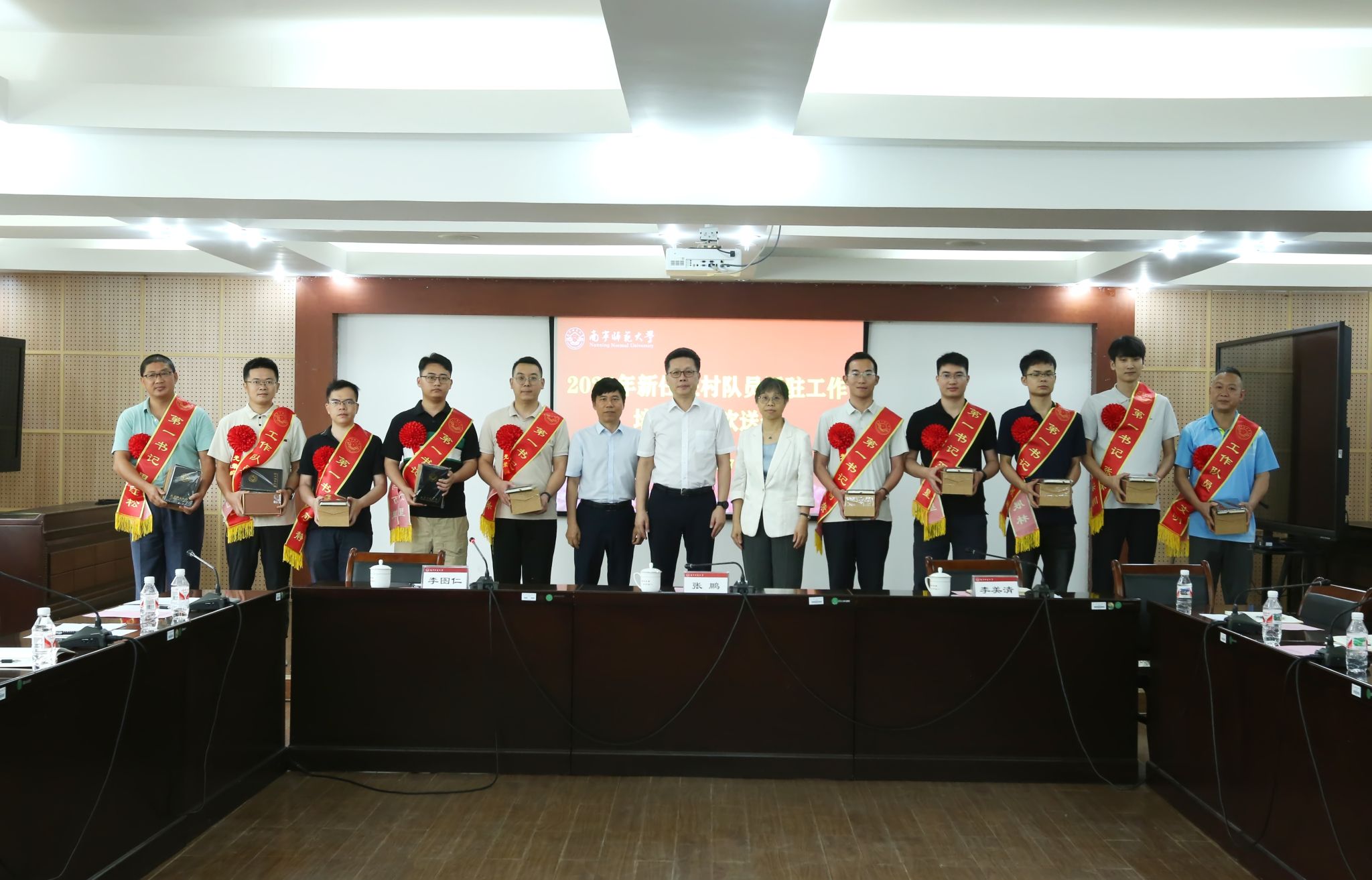 欢送会上,张鹏为奔赴乡村振兴一线的新任驻村队员佩戴绶带。他殷切期望新队员以“赶考”的使命感扛起乡村振兴新使命,积极作为、锤炼自我,接好乡村振兴“接力棒”,为乡村发展注入南师智慧与力量。