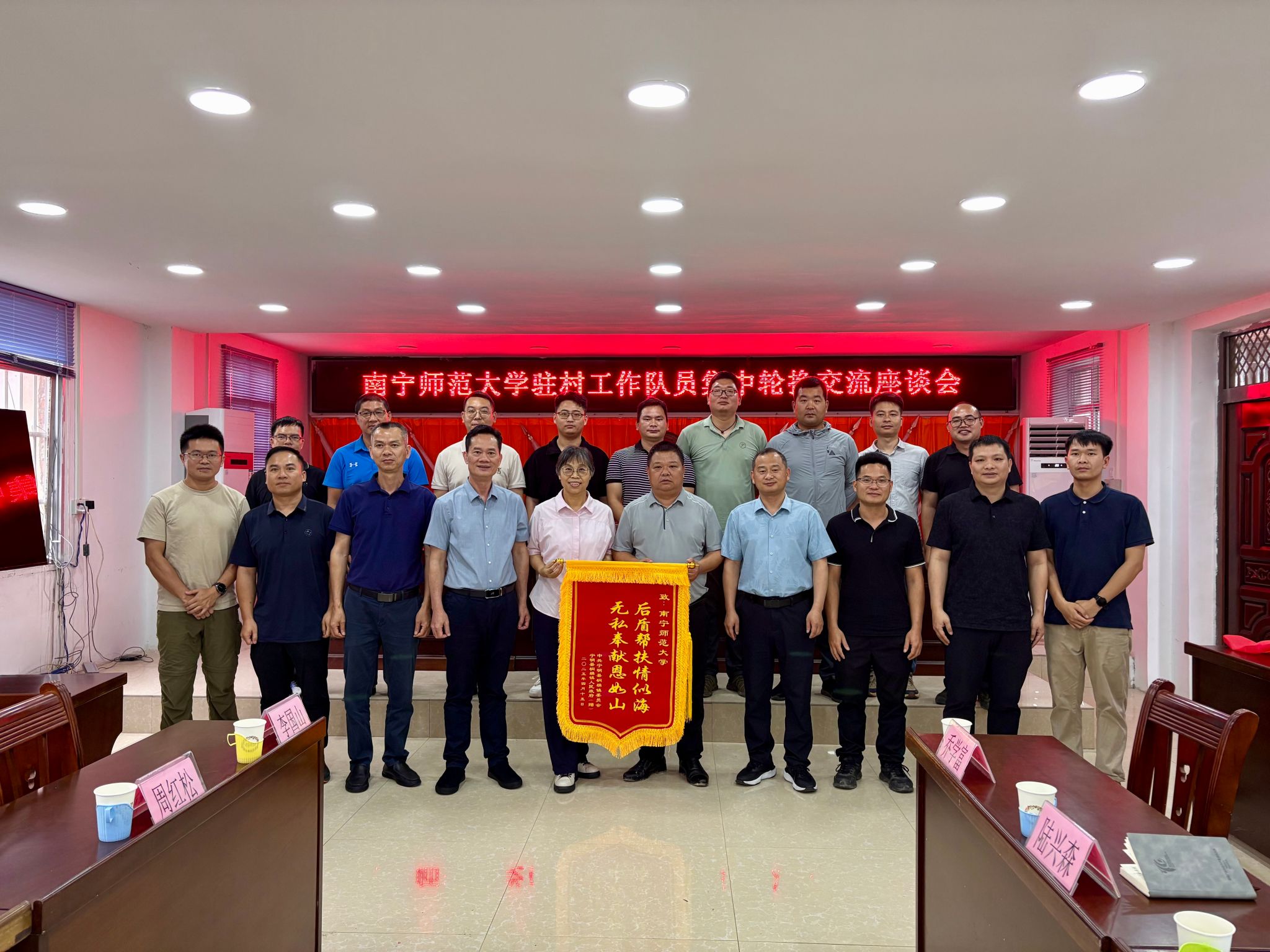 5月9日,完美(中国)纪委书记李美清、总会计师梁家斌分别率队,送新驻村队员赴宁明县、罗城仫佬族自治县上岗履职,并在驻村地举行驻村工作队员集中轮换工作座谈会。