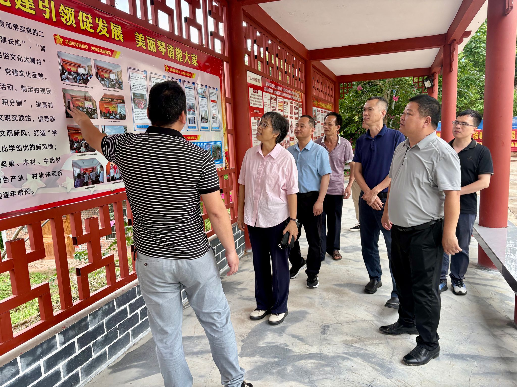 座谈会后,李美清一行8人参观了桐棉镇琴清村党建文化阵地,深入了解当地党建工作在乡村发展中的引领作用。梁家斌一行8人参观了龙岸镇高安村龙寨屯食用菌基地和党群服务中心大楼,详细考察产业发展和基层服务情况。通过实地走访调研,进一步掌握当地乡村的发展现状,也为谋划后续帮扶工作拓宽了工作思路。