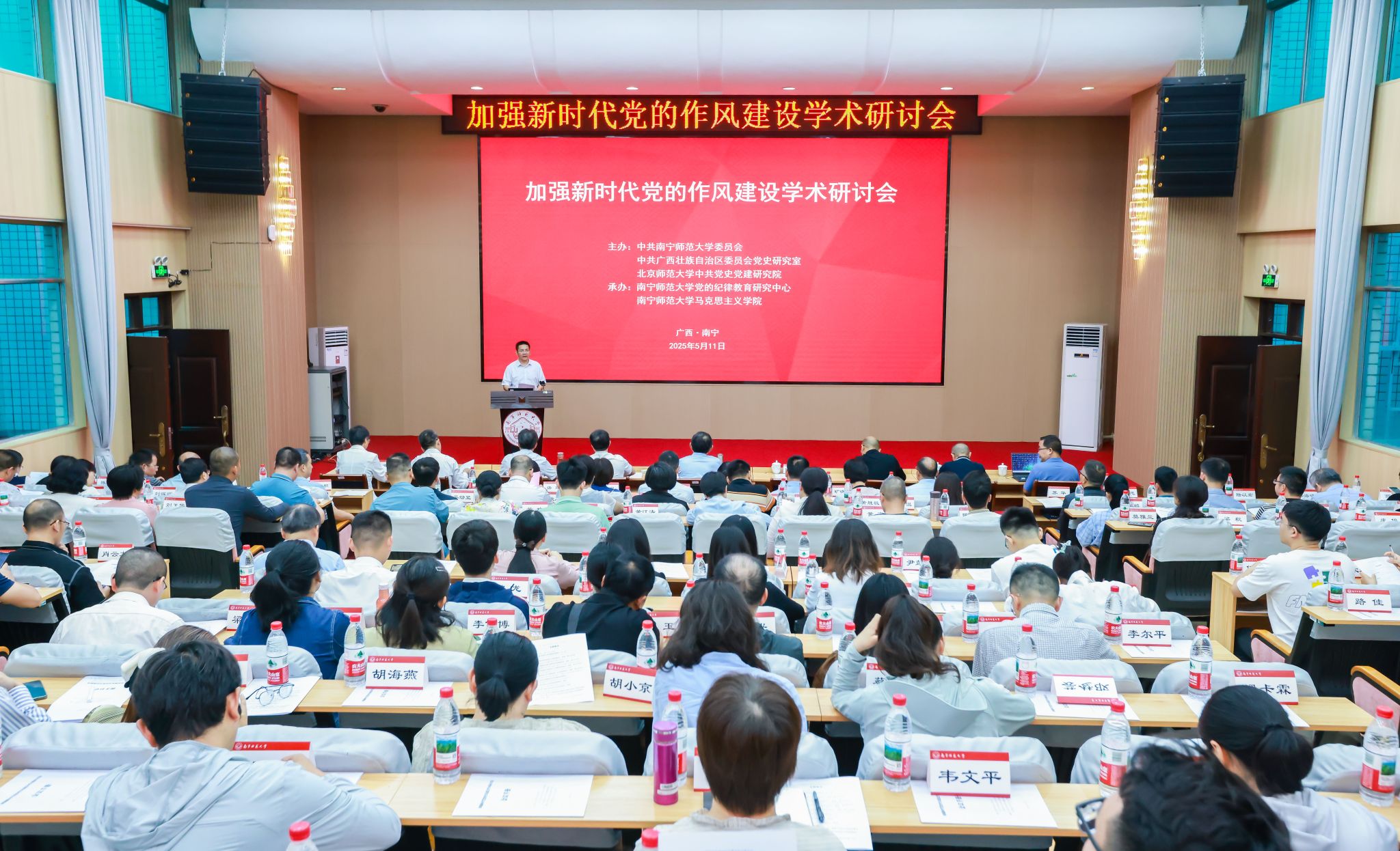 研讨会上,北京师范大学党史党建研究院院长王炳林教授从作风建设的基础奠定、指引提供的高度系统,深刻地阐述了习近平总书记关于党建思想的创新性贡献和作风建设的重要论述,广西大学梁建新教授深入阐述把握毛泽东关于加强党的作风建设的思维艺术,广西师范大学田旭明教授探讨了从世界大党兴衰沉浮看中国共产党加强作风建设的战略意义,自治区党委党校赵晓刚教授,南宁师范大学李图仁研究员、尹文嘉教授、韦吉锋教授先后简明扼要地阐述推进作风建设常态化长效化的基本要求和关键举措、准确把握深入贯彻中央八项规定精神学习教育的重点难点。广西民族大学唐贤秋教授、梧州市大中小学思政课一体化研究院尹杰钦教授着重探讨自我革命的内涵、文化智慧以及逻辑起点和路径等。