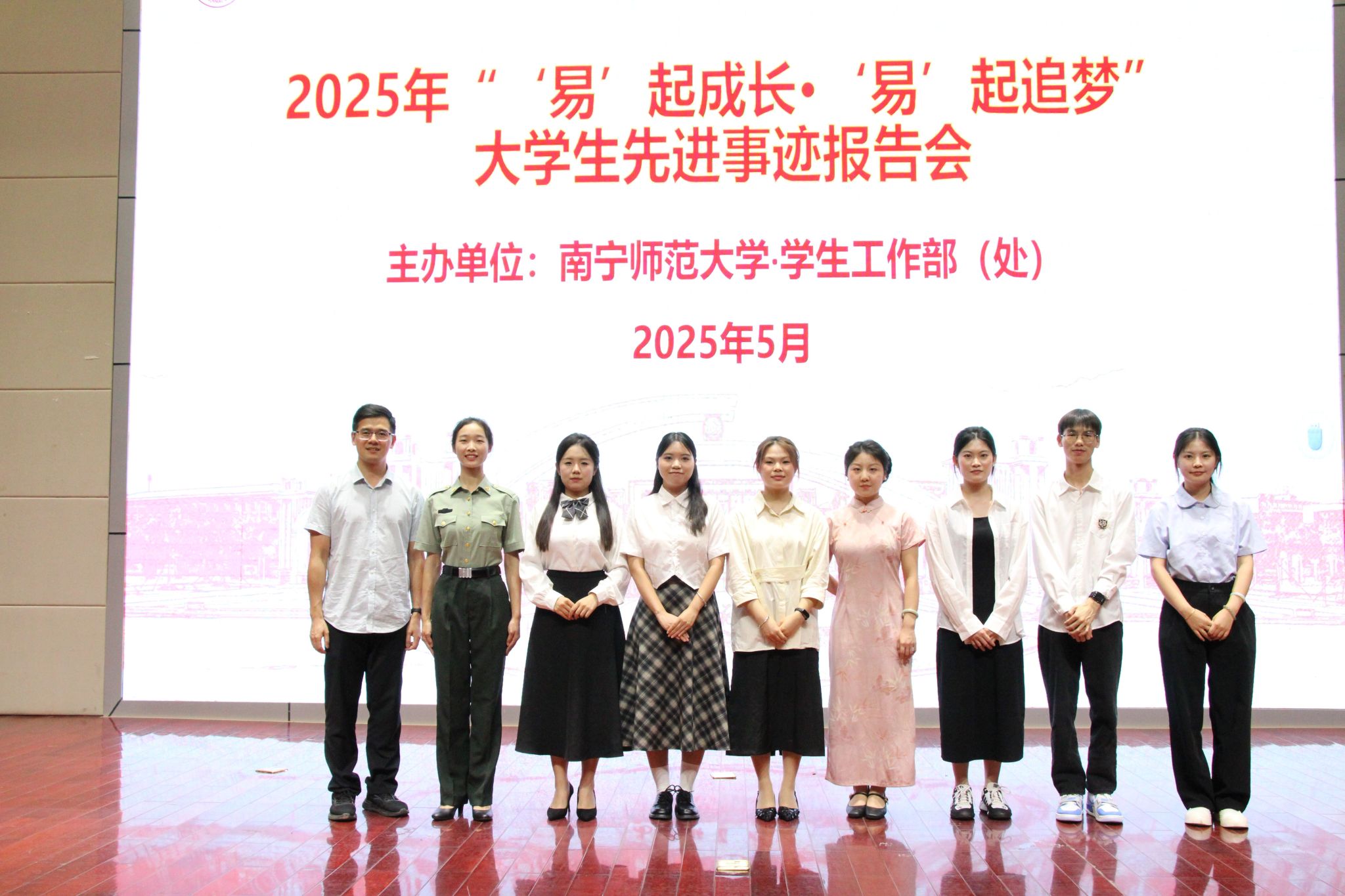 本次报告会通过“身边人讲身边事”的方式,生动诠释了“优秀始于平凡,榜样就在身边”,以此激励广大在校学生立志学习、追求先进,在南宁师范大学这片沃土上深耕梦想,努力成为堪当强国建设、民族复兴大任的时代青年。