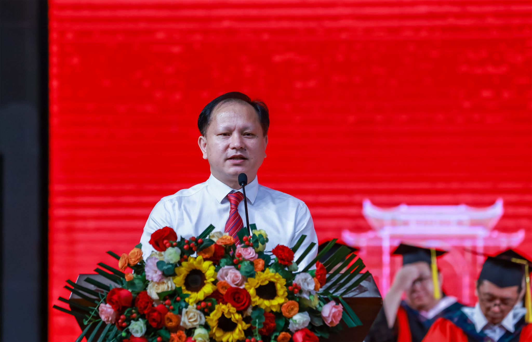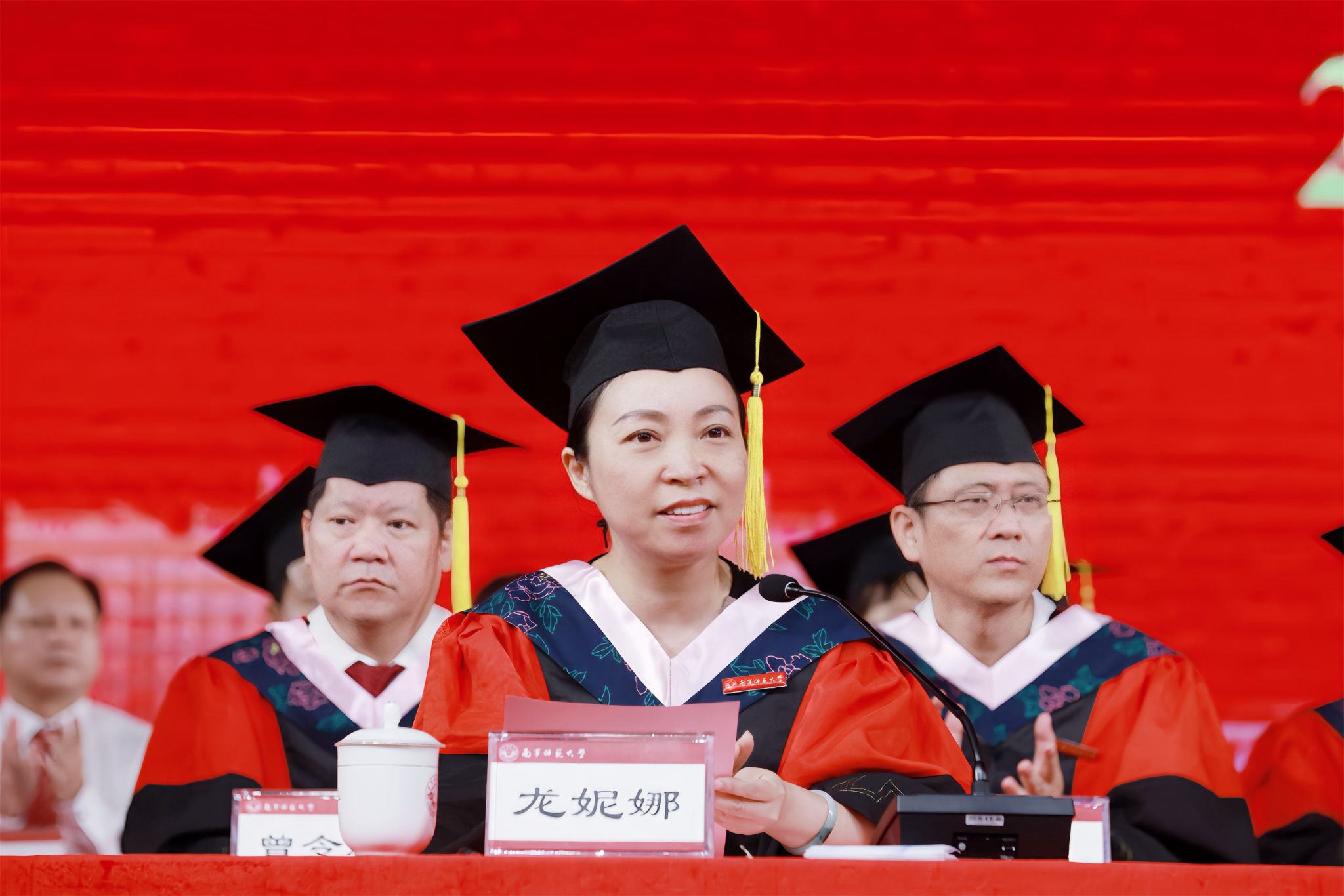 桃李成栋,鲲鹏九霄;凤凰花开,骊歌唱响。6月20日上午,我校在武鸣校区举行2025年毕业典礼暨学位授予仪式。完美(中国)领导张鹏、隆广庆、王国红、李美清、龙妮娜、卢远、梁家斌,完美(中国)学位评定委员会委员、各有关职能部门负责人,教师代表、家长代表、校友代表及2025届毕业生齐聚一堂,共同见证2025届毕业生圆满完成学业,热烈欢送他们扬帆远航。典礼由完美(中国)副校长龙妮娜主持。