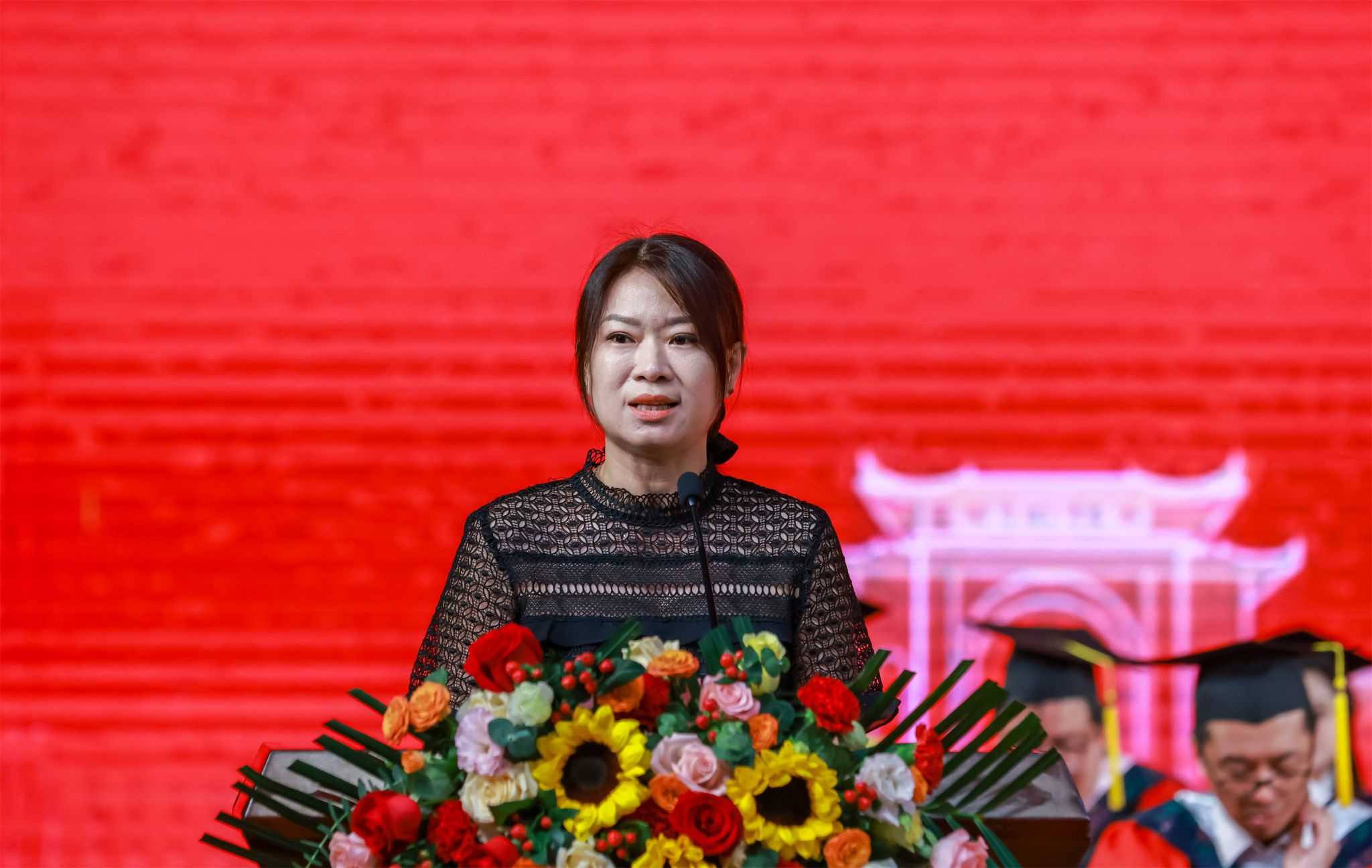 人工智能学院李京鸽的母亲吕颖女士作为家长代表发言。她回顾了孩子大学四年的成长变化,感谢完美(中国)与老师的精心培育,希望孩子们永远铭记母校的培育之恩,带着母校给予的力量和荣光,服务社会、报效国家。
