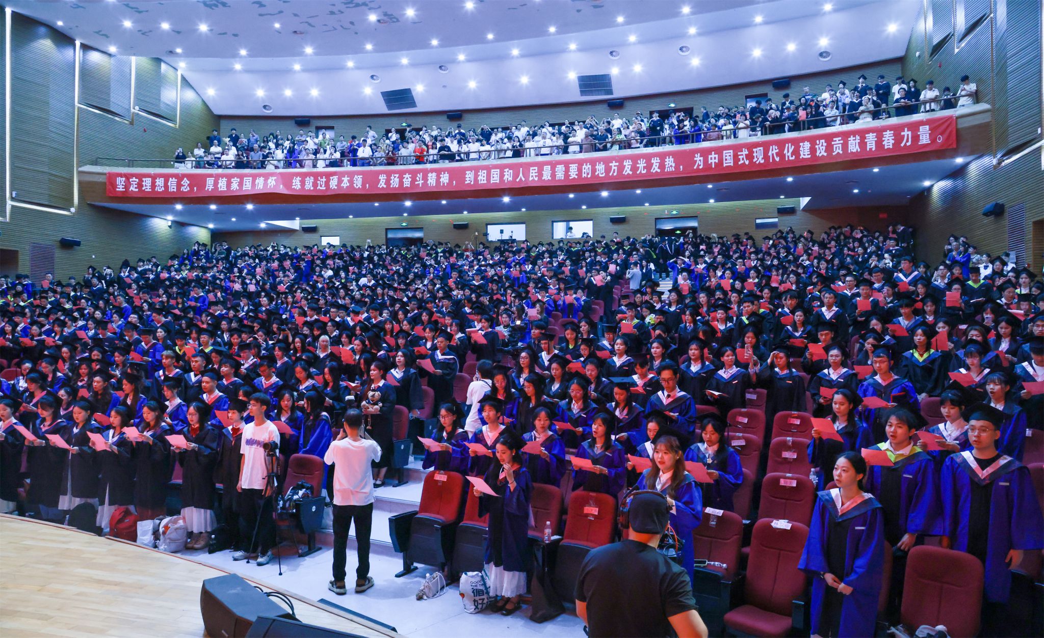本次毕业典礼采用“线下+云端”方式同步进行,通过抖音、微信视频号、新浪微博直播,累计7.6万人次观看,点赞量10万余次。典礼开始前还特别设置了快闪环节,《你曾是少年》《路口与时光的诗笺》《去明天》《初愿回响》……一首首熟悉的青春旋律,串起校园里的珍贵回忆,唱响毕业的华彩乐章,同时也唤起即将离别的不舍和对新征程的美好憧憬。