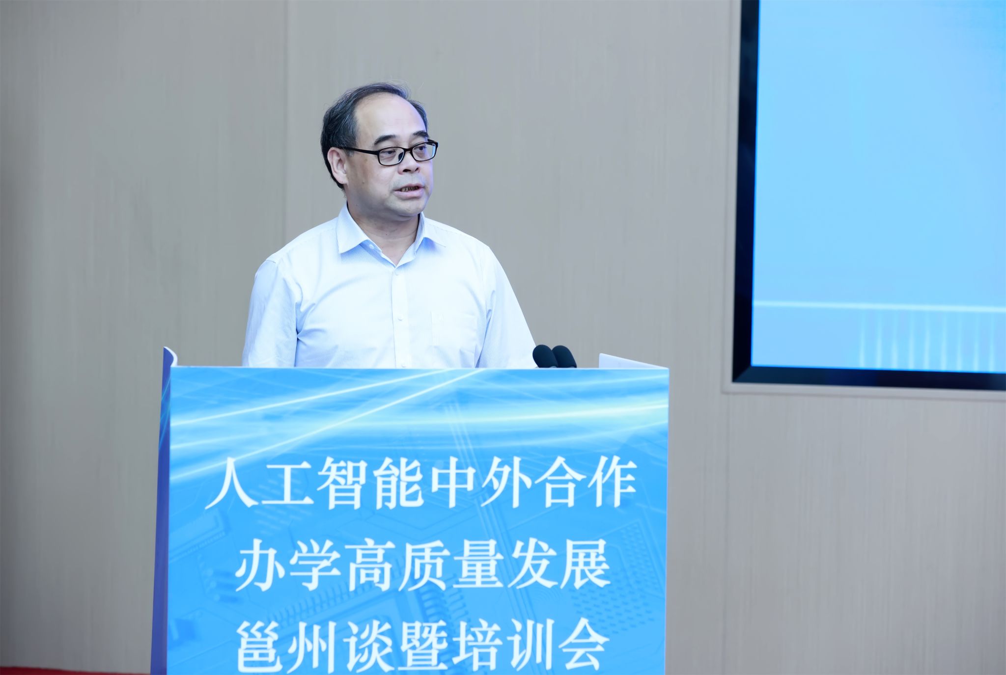 培训会上,自治区数据局党组成员、自治区信息中心党委书记、主任周飞、上海师范大学王奇才、桂林电子科技大学欧阳宁、北京航空航天大学于黎明、大连理工大学王珏、山东建筑大学吴安新、科大讯飞高教研究院黄志原等专家,分别以《广西发展面向东盟的人工智能探索与实践》《如何理解“人工智能”,如何实现“人工智能×中外合作办学”?》《广西在人工智能教育领域的合作机遇与创新》《人工智能中外合作办学问题与对策》《以高质量中外合作办学助力教育对外开放——大连理工大学的探索与实践》《人工智能中外合作办学高质量发展的若干思考》《人工智能助力高校数字化发展与新质人才培养》为题作了专题报告。
