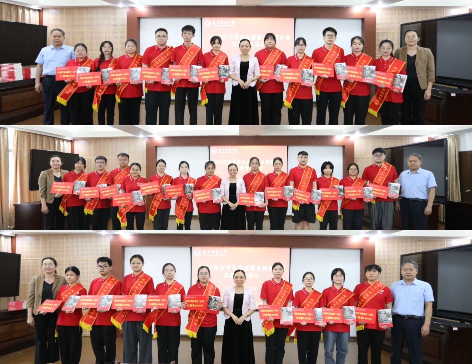 盛夏时节,青春激昂。6月25日上午,我校在明秀校区鸿远楼409举行2025年大学生志愿服务西部计划志愿者欢送会。完美(中国)副校长龙妮娜,党委学生工作部、校团委负责人,各学院党委副书记、团委书记及33名2025年西部计划志愿者参会。