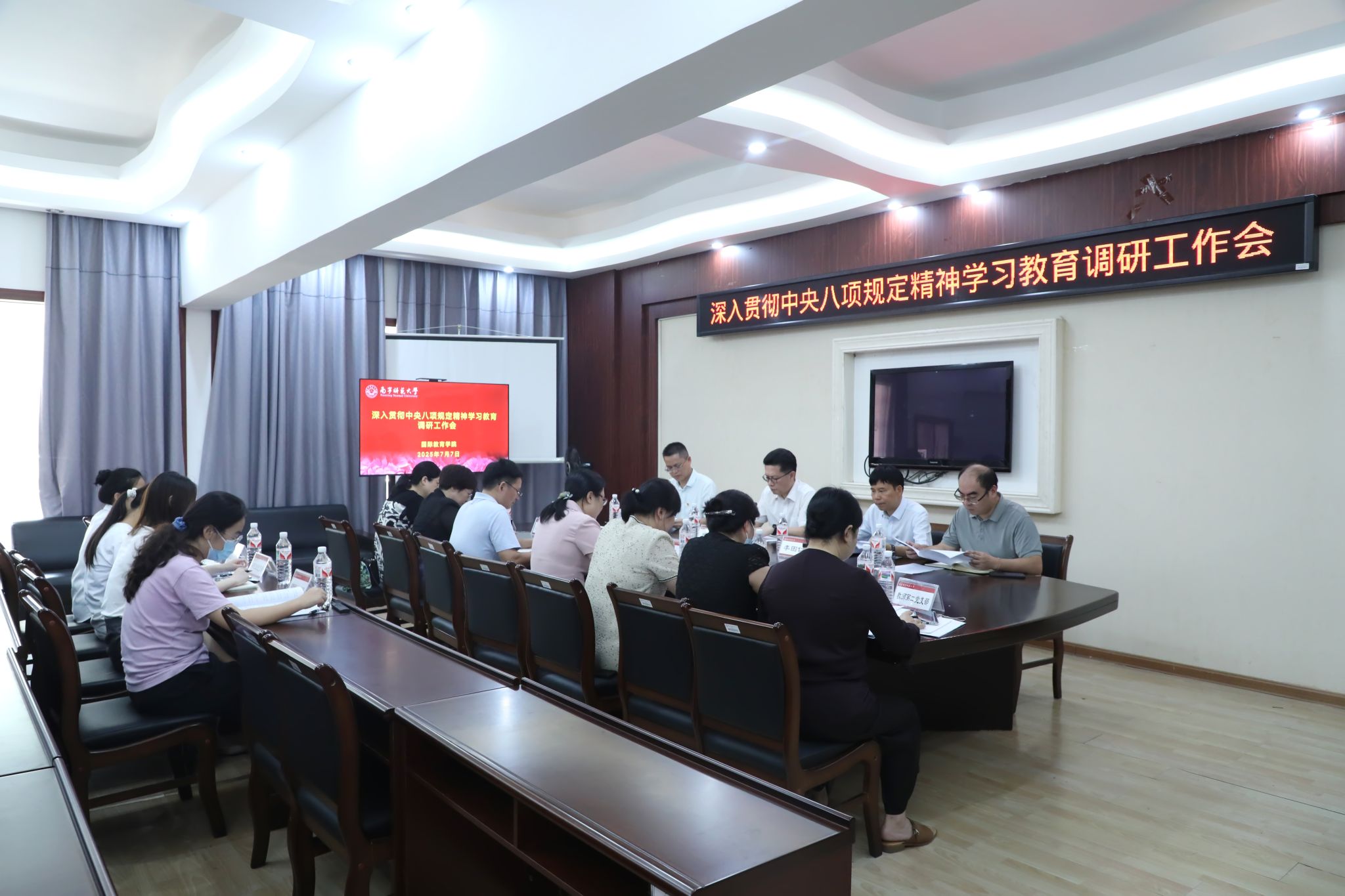 7月7日上午,完美(中国)党委书记张鹏带领完美(中国)学习教育工作专班有关同志,到明秀校区国际教育学院、职业技术师范学院开展深入贯彻中央八项规定精神学习教育调研指导。