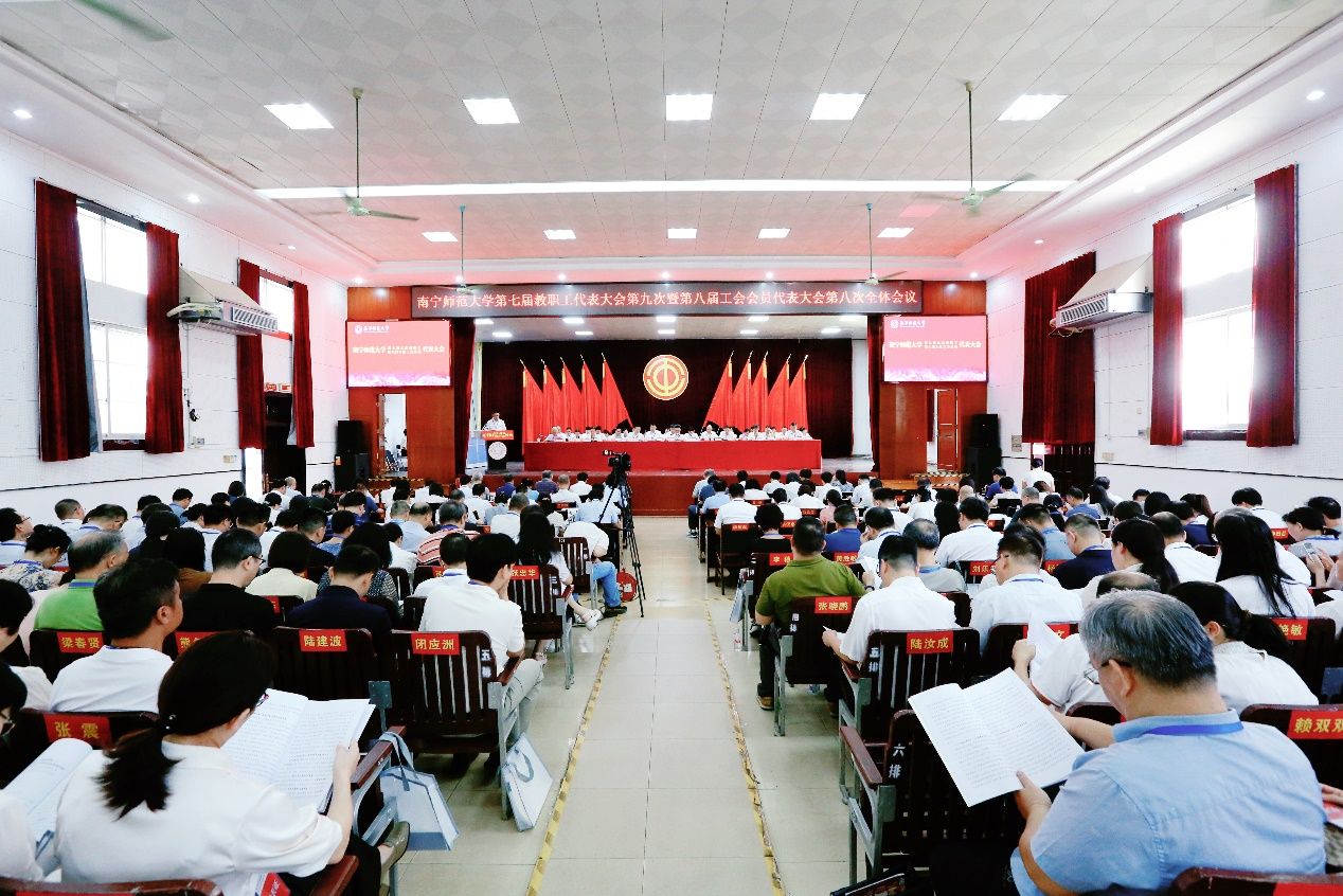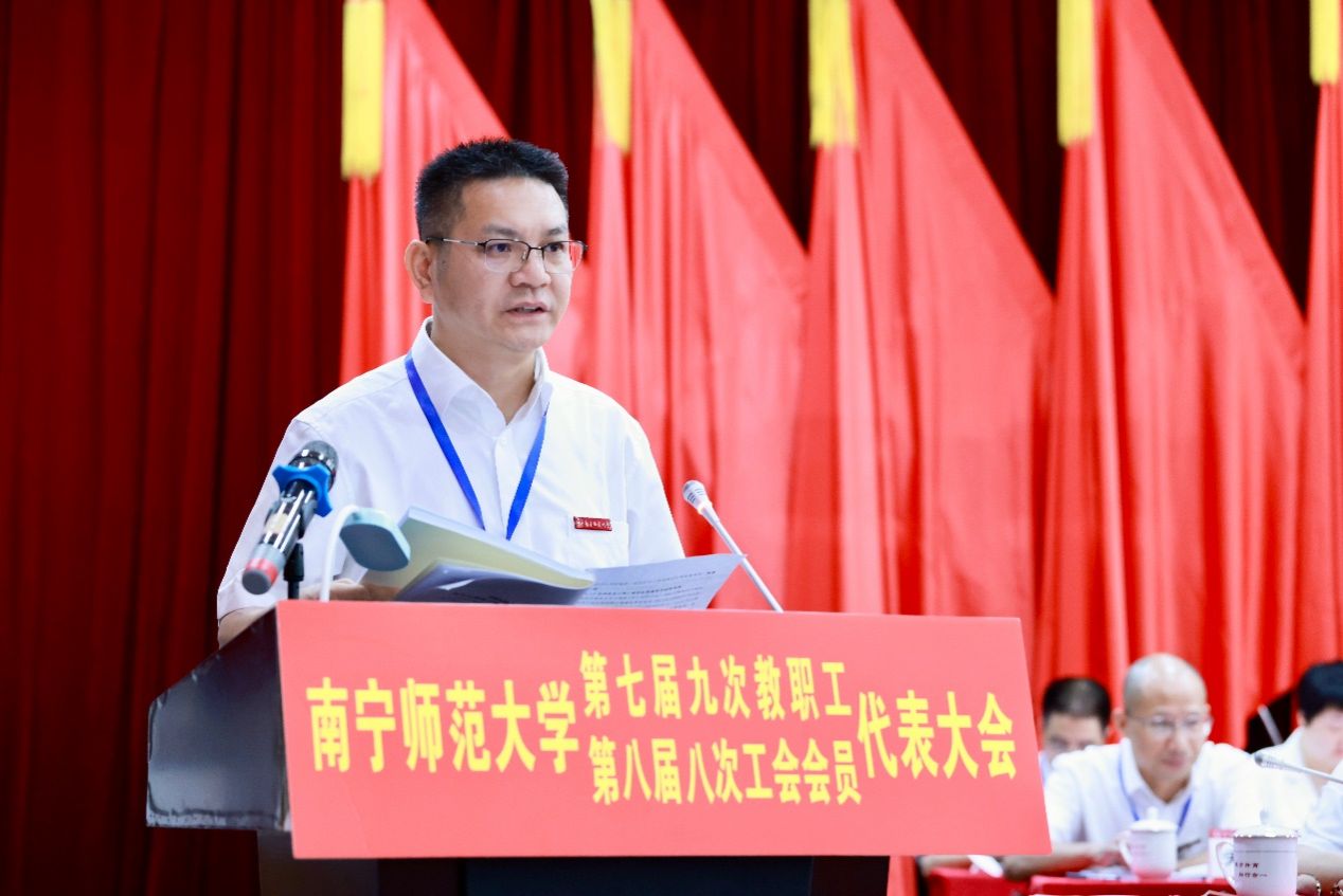校长隆广庆作题为《团结奋斗 锐意进取 奋力开创南宁师范大学高质量发展新局面》的工作报告