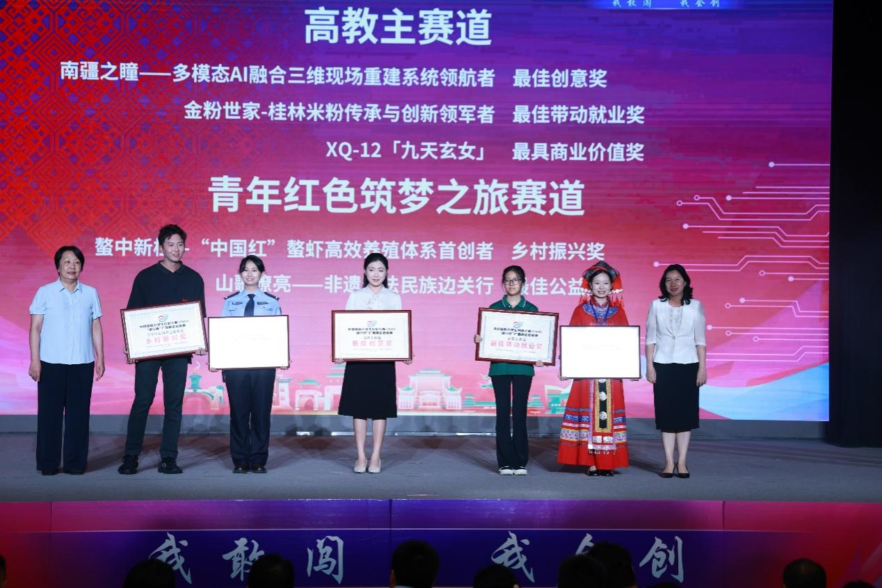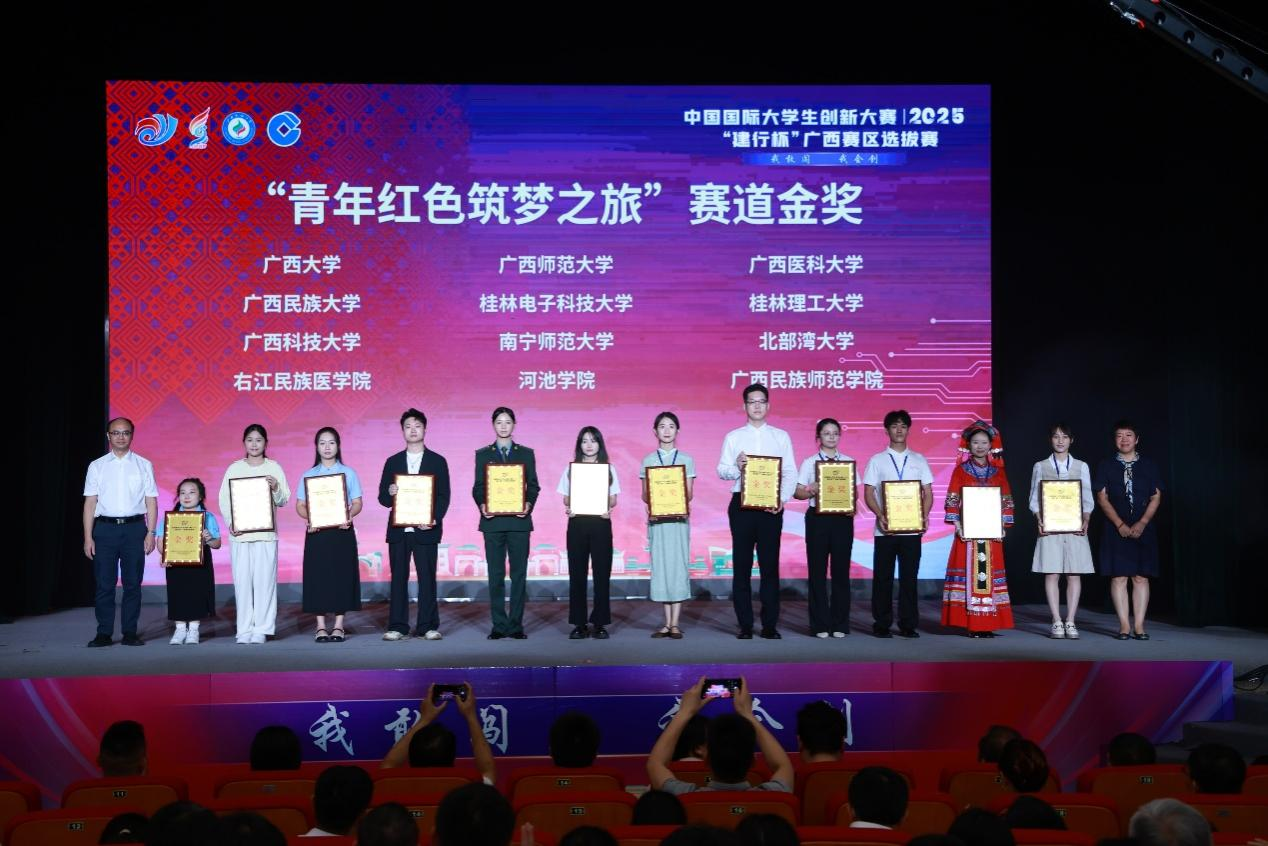 7月15日,中国国际大学生创新大赛(2025)广西赛区选拔赛现场总决赛(以下简称 “区赛”)在广西民族大学拉开帷幕。我校学子共斩获金奖17项、银奖11项,其中《山歌嘹亮——非遗普法民族边关行》项目摘得最佳公益奖,用亮眼成绩诠释了“以赛育人”。