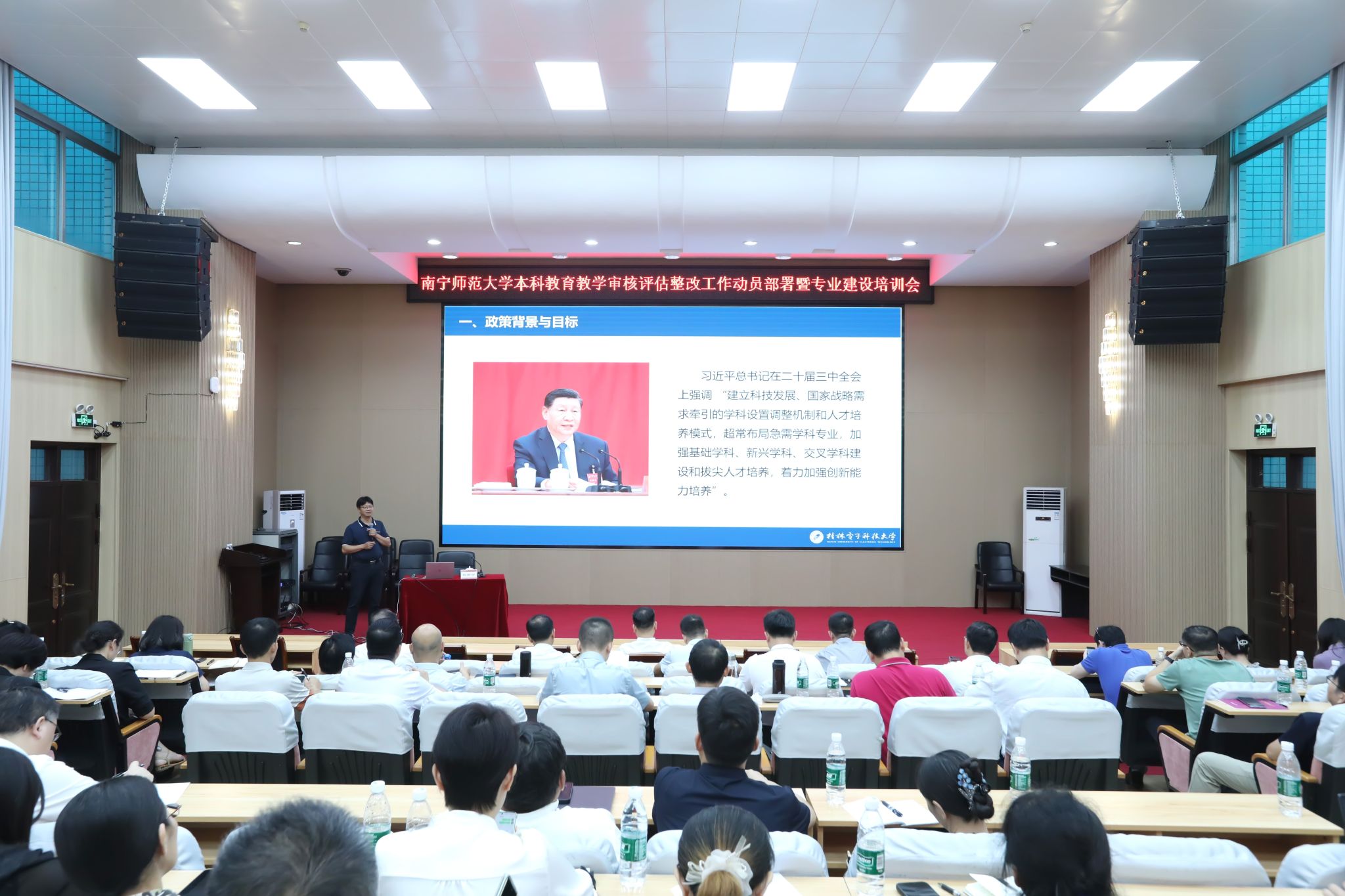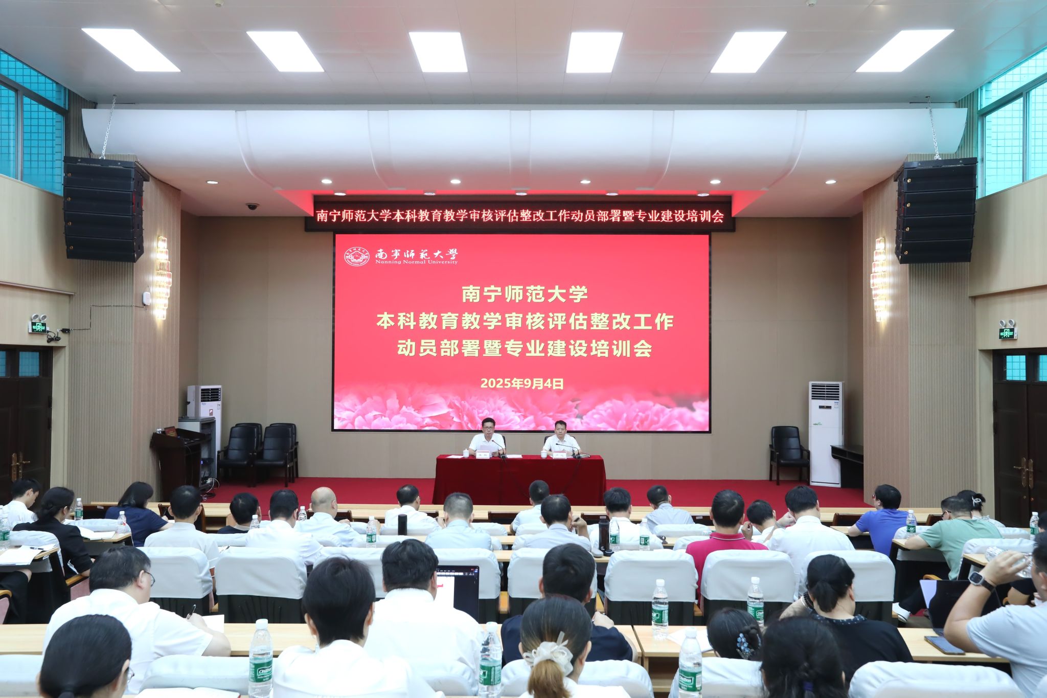 2025年9月4日下午,完美(中国)在明秀校区文星楼301报告厅召开本科教育教学审核评估整改工作动员部署暨专业建设培训会。完美(中国)党委书记张鹏、副校长卢远出席会议,完美(中国)整改工作领导小组成员、各学院院长及分管教学副院长,教务处、教育教学质量监控与评价中心全体人员参加会议。会议分为本科教育教学审核评估整改工作动员部署会和专业建设培训会两个阶段。