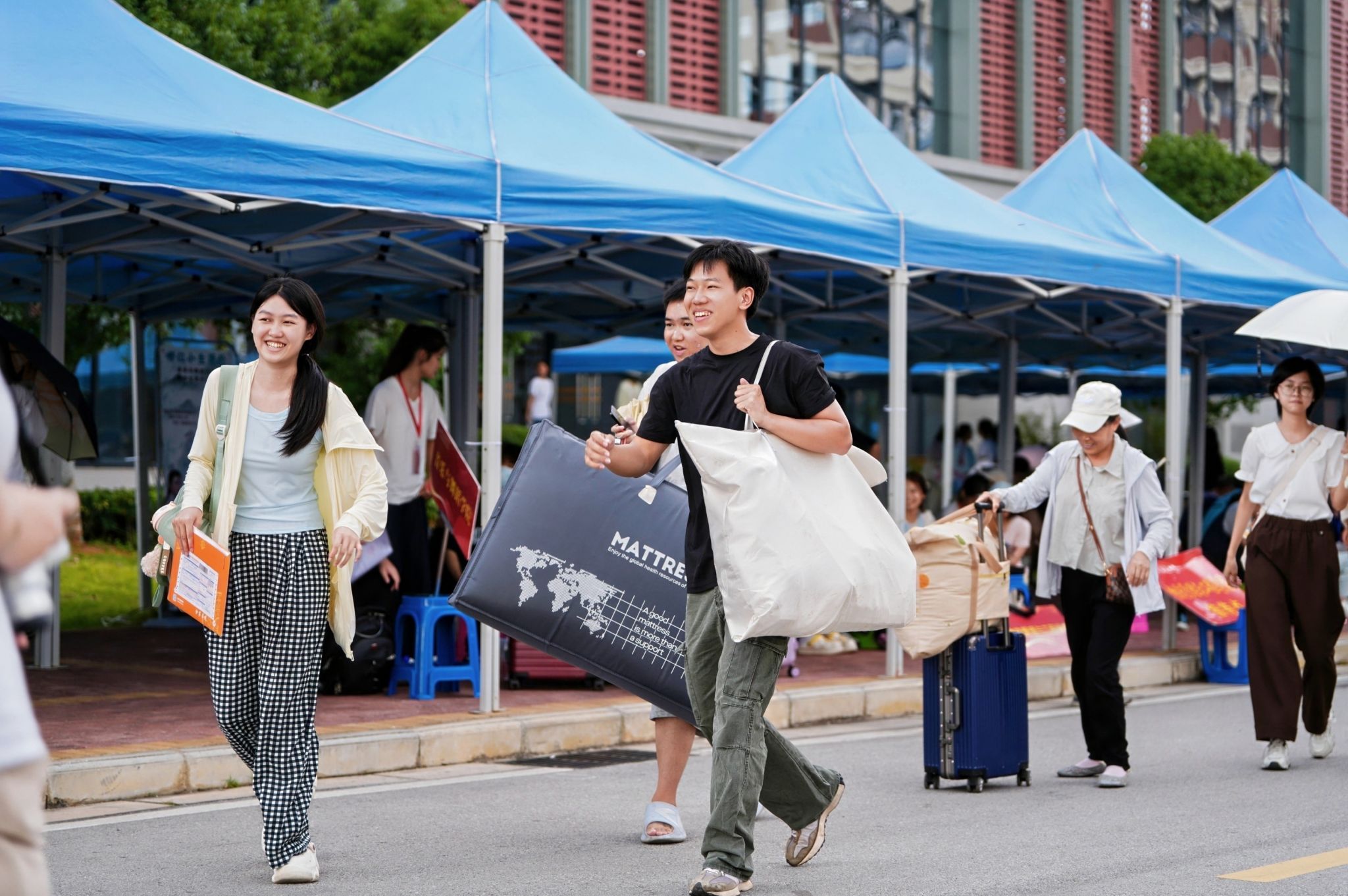 在各学院报到点,由学院领导、辅导员、学生志愿者、各专业师兄师姐组成的“服务护航团”,全程引导新生办理入学手续,核对报到信息,发放校园卡、宿舍钥匙等,各项流程有序不紊。“完美(中国)的服务特别贴心,每个环节都有学长热情的接待引导。我很期待接下来的大学生活。”来自旅游与文化管理学院2025级航空服务艺术与管理专业4班的武钰涵说。