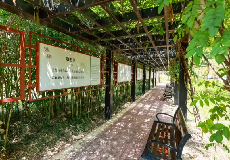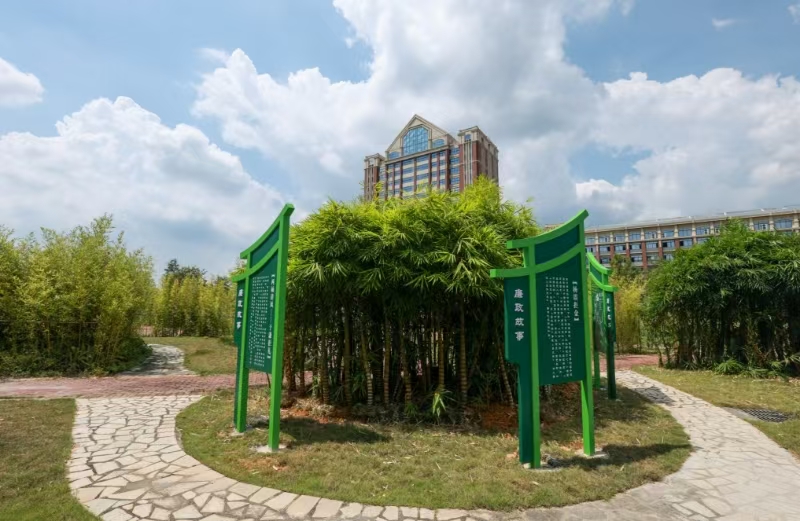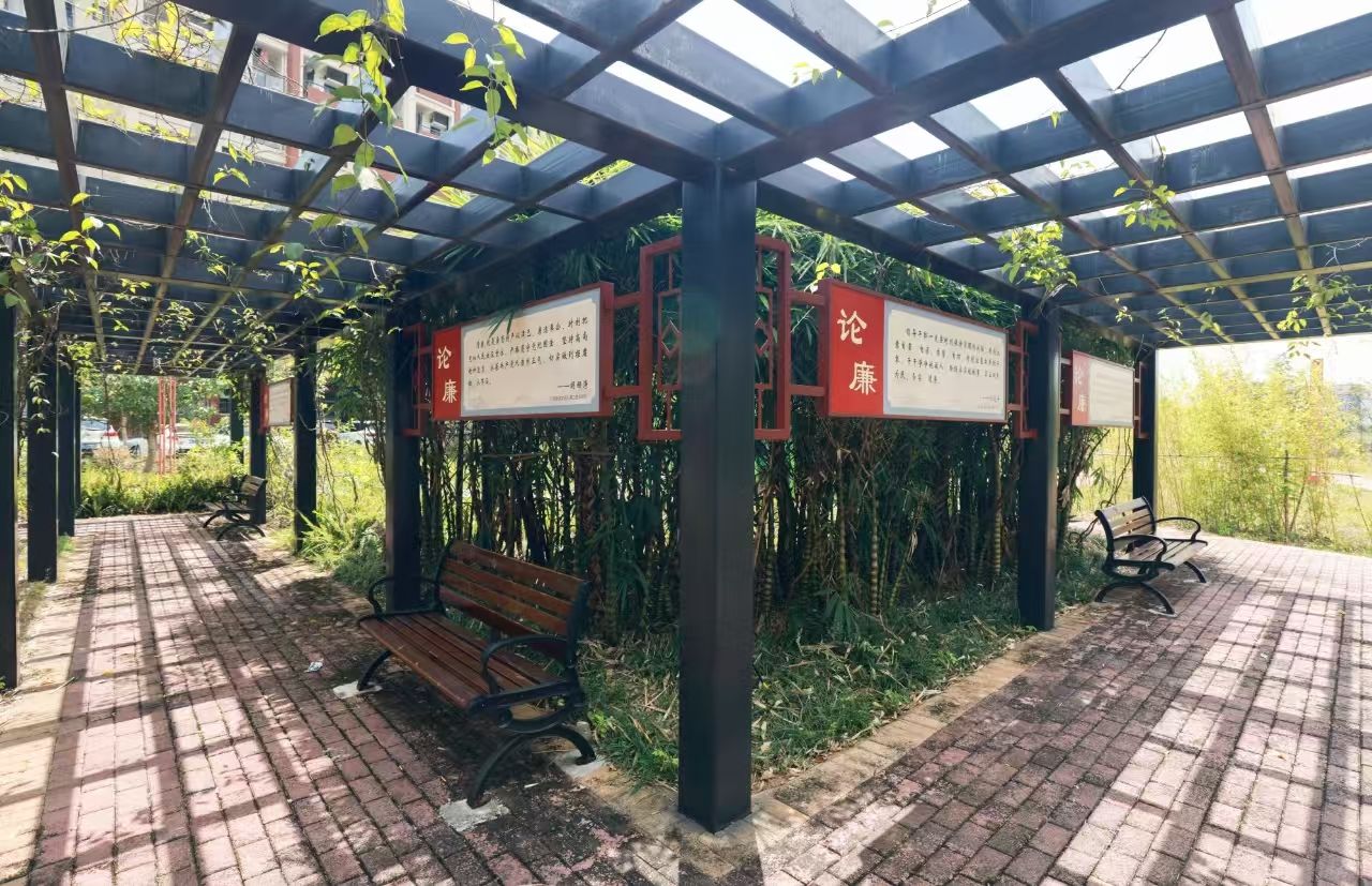 武鸣校区清风竹苑廉洁文化园以“竹”喻“廉”,依托原有竹林景观,打造了“论廉、画廉、咏廉”等主题板块。园区内设置多处廉政实景宣传栏,展示党和国家领导人关于廉洁的重要论述、广西历史上清官廉吏事迹、经典廉政诗歌画作以及廉洁小故事,将廉洁元素与自然景观、人文历史深度融合,营造出“步步有廉景、处处有廉意”的文化氛围。