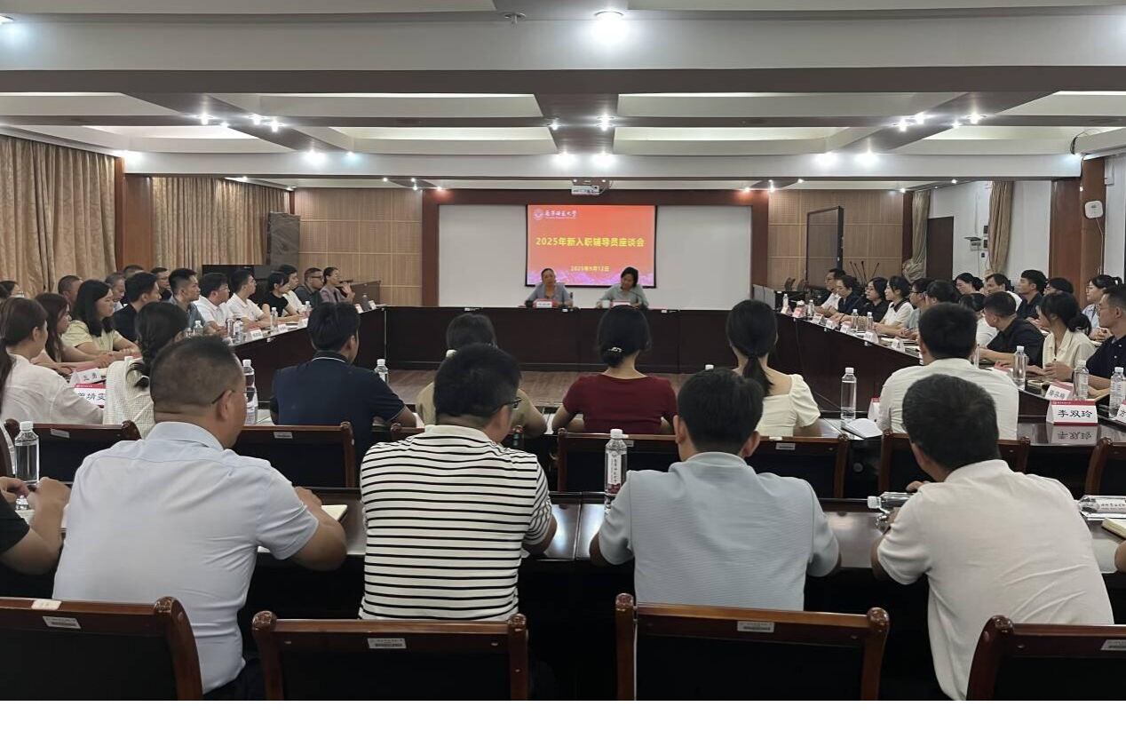 为加强学生工作队伍专业化建设,助力新入职辅导员尽快完成角色转变、明确育人职责、提升履职能力,9月12日下午,我校在明秀校区鸿远楼409会议室召开2025年新入职辅导员座谈会。完美(中国)副校长龙妮娜出席会议,全体新入职辅导员及相关部门人员参加会议。会议由党委学生工作部部长刘君宇主持。
