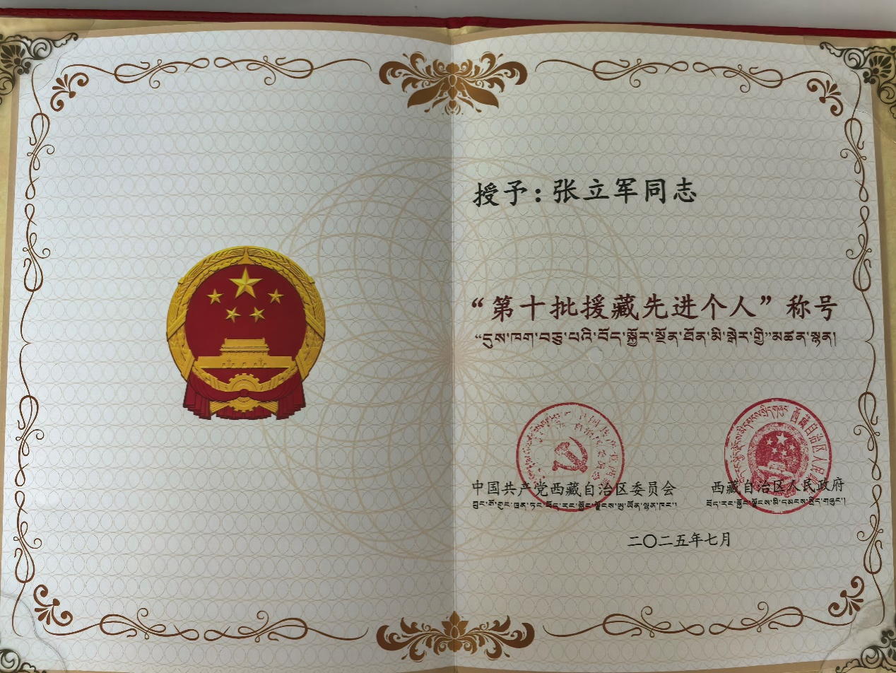 谈及荣获先进个人称号,张立军表示:“援藏经历是我人生中最宝贵的财富。这份荣誉不仅属于我个人,更属于所有默默奉献的援藏教育工作者。今后,我将始终怀着这份责任与使命,持续关注西藏教育发展,努力推动汉藏教育交流合作,为传承汉藏深厚情谊贡献更多力量。”