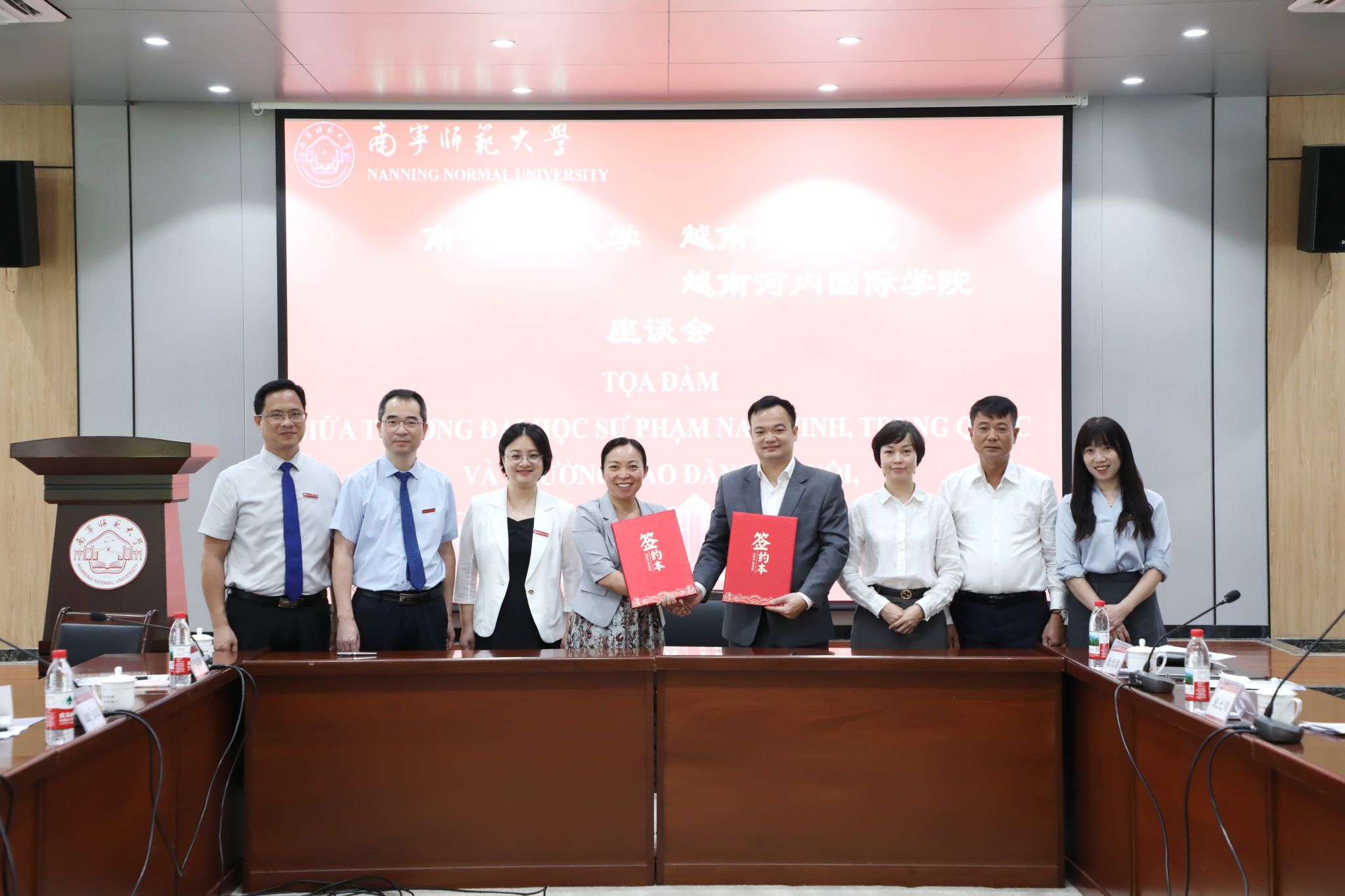 裴光盛和阮氏玉碧对我校的热情接待表示感谢,并对南宁师范大学近年来取得的成绩表示赞赏。他们分别介绍了越南河内学院和河内国际学院的基本情况、办学优势与特色,表达了建立教育合作关系、实现合作共赢的愿景,希望在学生实习、师生交流、学科建设等方面开展多元合作,为两国友好合作培养更多优秀专业人才。