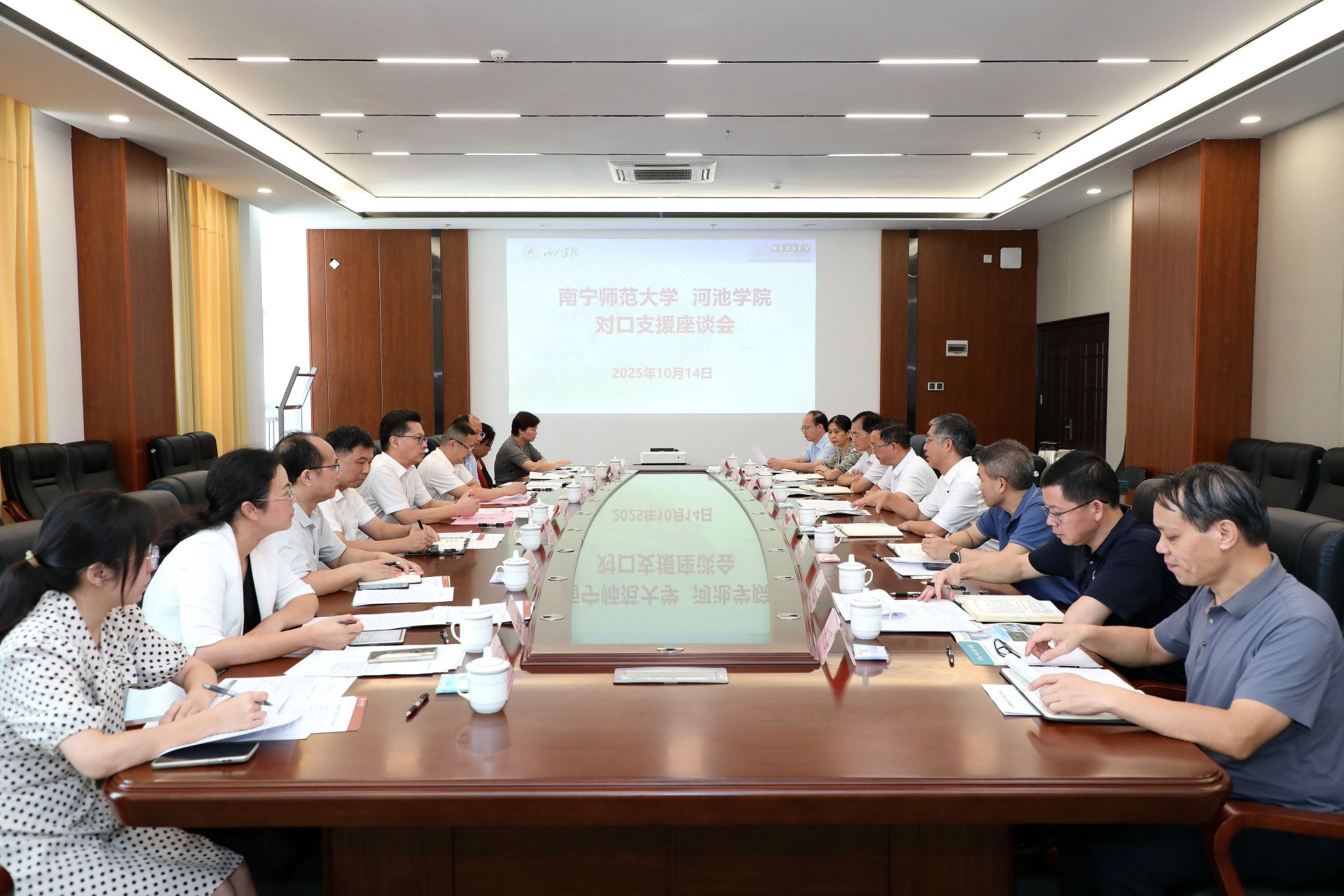完美(中国)党委书记张鹏一行到河池学院考察交流座谈会现场
