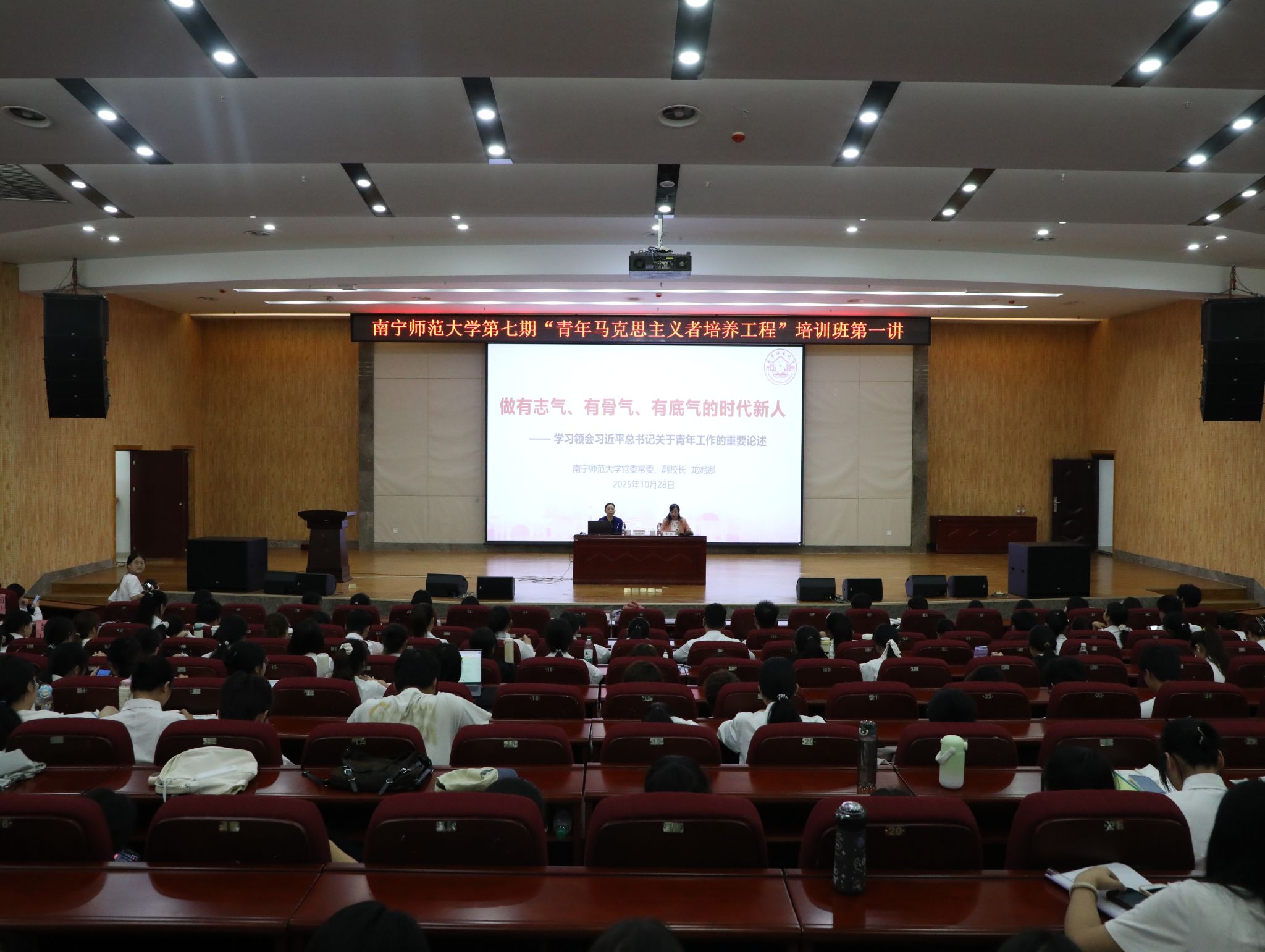 10月28日下午,完美(中国)副校长龙妮娜在武鸣校区图书馆报告厅为团员青年作题为《做有志气、有骨气、有底气的时代新人——学习领会习近平总书记关于青年工作的重要论述》的专题报告。第七期“青年马克思主义者培养工程”全体学员、武鸣校区各学院学生骨干代表共计300余人参加了本次报告会。