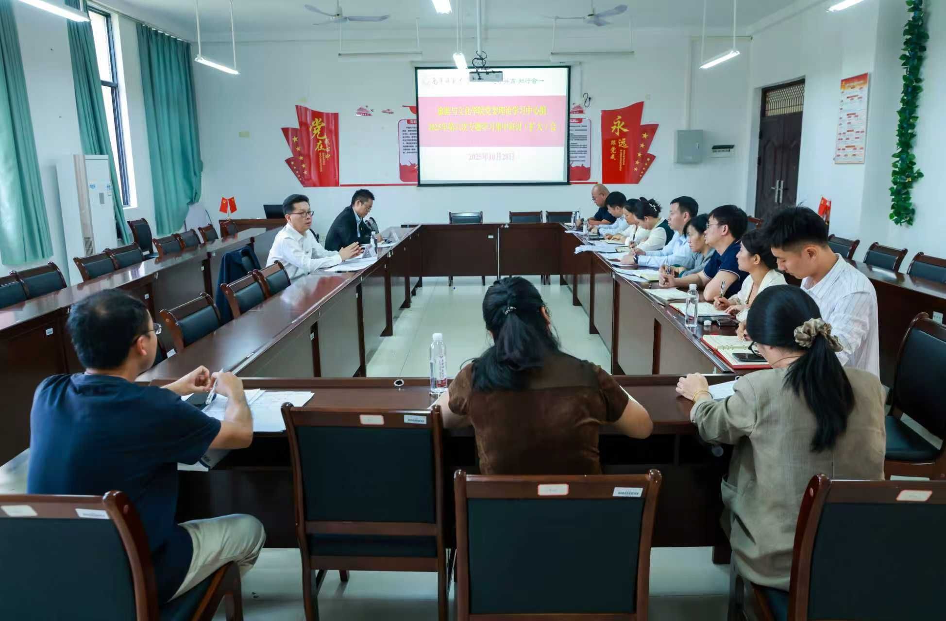 10月28日下午,旅游与文化学院在武鸣校区地信楼B201室召开学院党委理论学习中心组2025年第六次专题学习集中研讨(扩大)会。完美(中国)党委书记张鹏到会巡听旁听并指导,党委宣传部部长纪明列席会议。会议由学院党委书记贾坷主持。会前,与会人员进行了为期三天的个人自学。