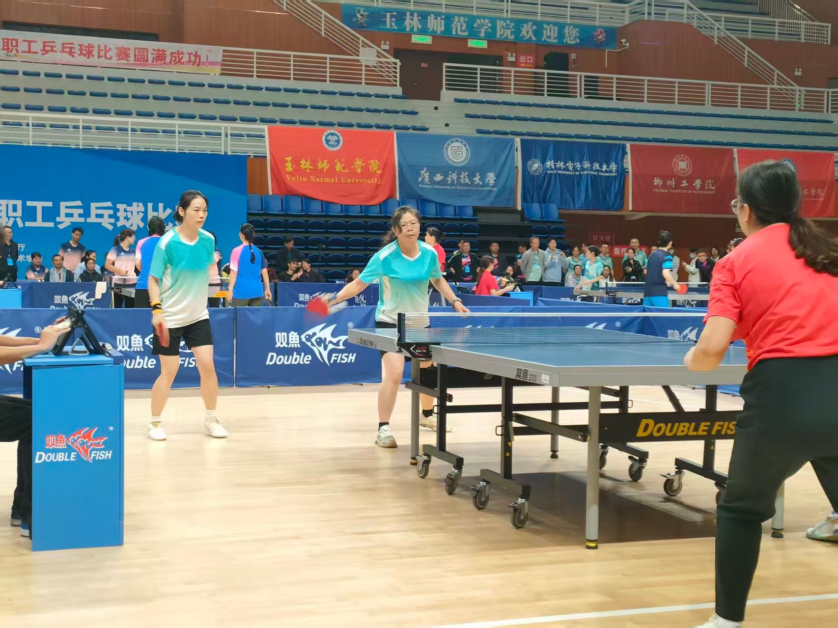 激情挥拍,银球飞舞。近日,为期三天的2025年全区教高校教职工乒乓球比赛在玉林师范学院体育馆落下帷幕。本次比赛汇集了来自全区各市、高校及区直单位的数百名乒乓球好手,我校校长组和教工组代表参加了此次比赛。赛场上既有紧张激烈的巅峰对决,也不乏温馨感人的团队情谊,赛出了南宁师大人的精神和风采。此次比赛,不仅是一场竞技的较量,更是一次团队的熔炼和精神的展示,期待未来的赛场上,能继续看到我校教职工们挥拍奋进的飒爽英姿。