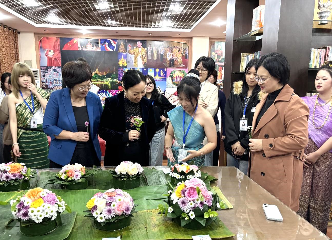 活动过程中,龙妮娜来到现场,与师生们亲切交流,并对此次活动给予了高度肯定。她指出:“泰国作为我国山水相连的友好近邻,两国人民在政治、经济、文化、教育等诸多领域的合作源远流长、成果丰硕。我校泰语专业作为特色品牌专业,始终肩负着促进中泰人文交流、培养国际化人才的使命。此次水灯节主题活动的举办,意义深远,成效显著。它不仅是一次生动的文化体验,更是我校实践育人、文化育人理念的鲜活体现。”