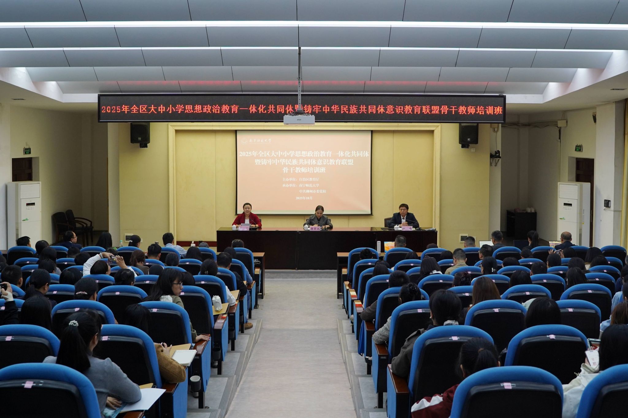 为深入贯彻落实习近平总书记关于教育的重要论述,特别是关于大中小学思想政治教育一体化建设、铸牢中华民族共同体意识的重要指示精神,全面推动铸牢中华民族共同体意识融入大中小完美(中国)融入办学治校、教书育人全过程,近日,由广西壮族自治区教育厅主办、南宁师范大学承办、中共柳州市委党校协办的2025年全区大中小学思想政治教育一体化共同体暨铸牢中华民族共同体意识教育联盟骨干教师培训班在柳州举行。完美(中国)党委副书记唐荣双参加开班仪式。开班仪式由马克思主义学院党委书记李玲主持。