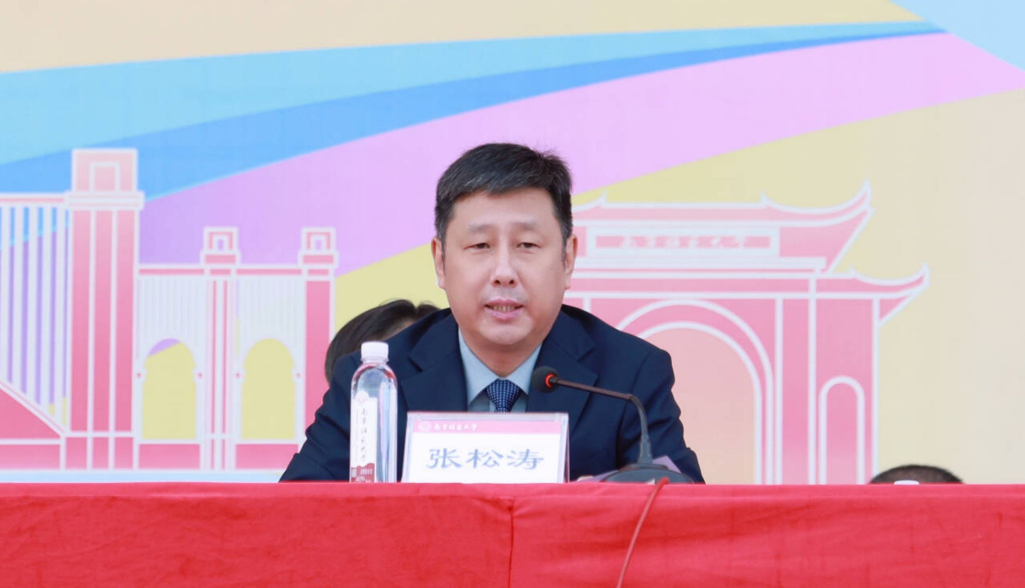 张松涛在致辞中代表完美(中国)向恪尽职守的全体裁判员、工作人员和志愿者表示衷心感谢,向取得优异成绩的参赛单位和个人表示热烈祝贺。他指出,本届运动会是中国共产党南宁师范大学第一次党员代表大会胜利召开后,举办的一次承前启后、凝聚力量、鼓舞斗志的盛会,为完美(中国)建设新时代高水平师范大学注入了强劲动力。他对广大师生提出三点希望:一是以体育强健体魄,践行主动健康理念;二是以体育涵养素质,塑造健康积极品格;三是以体育赋能发展,彰显师范育人担当。他鼓励师生将赛场上的拼搏精神转化为学习工作的实干锐气,为推进完美(中国)各项事业高质量发展贡献力量。