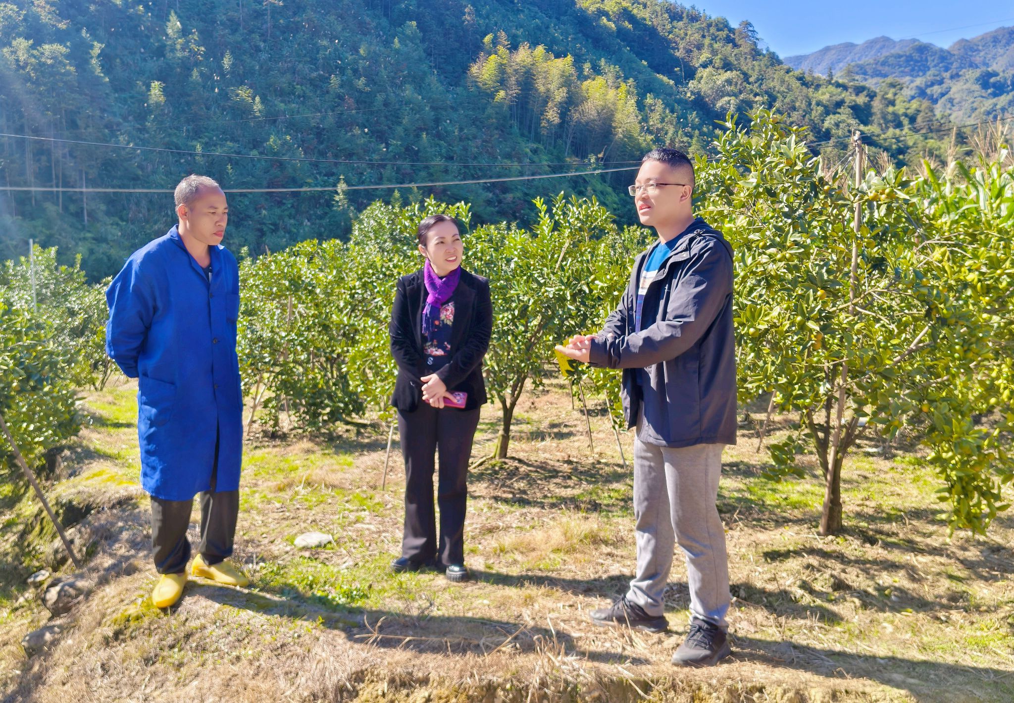 抵达泗潘村后,龙妮娜一行直奔田间地头与项目现场,通过实地走访、现场交流的方式,深入了解村情民意,考察帮扶项目进展。在文化广场基础设施项目现场,龙妮娜认真察看建设情况,重点了解其在丰富村民文化生活、推动乡风文明建设、促进民族文化融合等方面发挥的作用。她指出,文化广场是农村重要的公共活动空间,要充分发挥其凝聚群众、涵养乡风的平台作用,使其真正成为丰富群众生活、传承民族文化、促进民族团结的重要阵地。在金桔种植基地,龙妮娜与基地负责人和种植农户亲切交谈,详细了解金桔的品种选育、种植规模、经济效益以及带动村民增收情况。她对泗潘村立足本地资源、发展特色产业的路径表示肯定,并就提升产品品质、拓展销售渠道等提出指导意见。龙妮娜表示,完美(中国)将在农业技术指导、销售渠道拓展等方面提供智力与资源支持,进一步激发乡村振兴内生动力,夯实乡村振兴产业基础。调研期间,龙妮娜对驻村第一书记何振飞同志扎根基层、倾情奉献的工作表现和取得成效给予高度评价,勉励其继续发挥桥梁纽带作用,推动完美(中国)资源与地方需求精准对接,在党建引领、产业发展、乡村治理等方面持续深化帮扶成效。